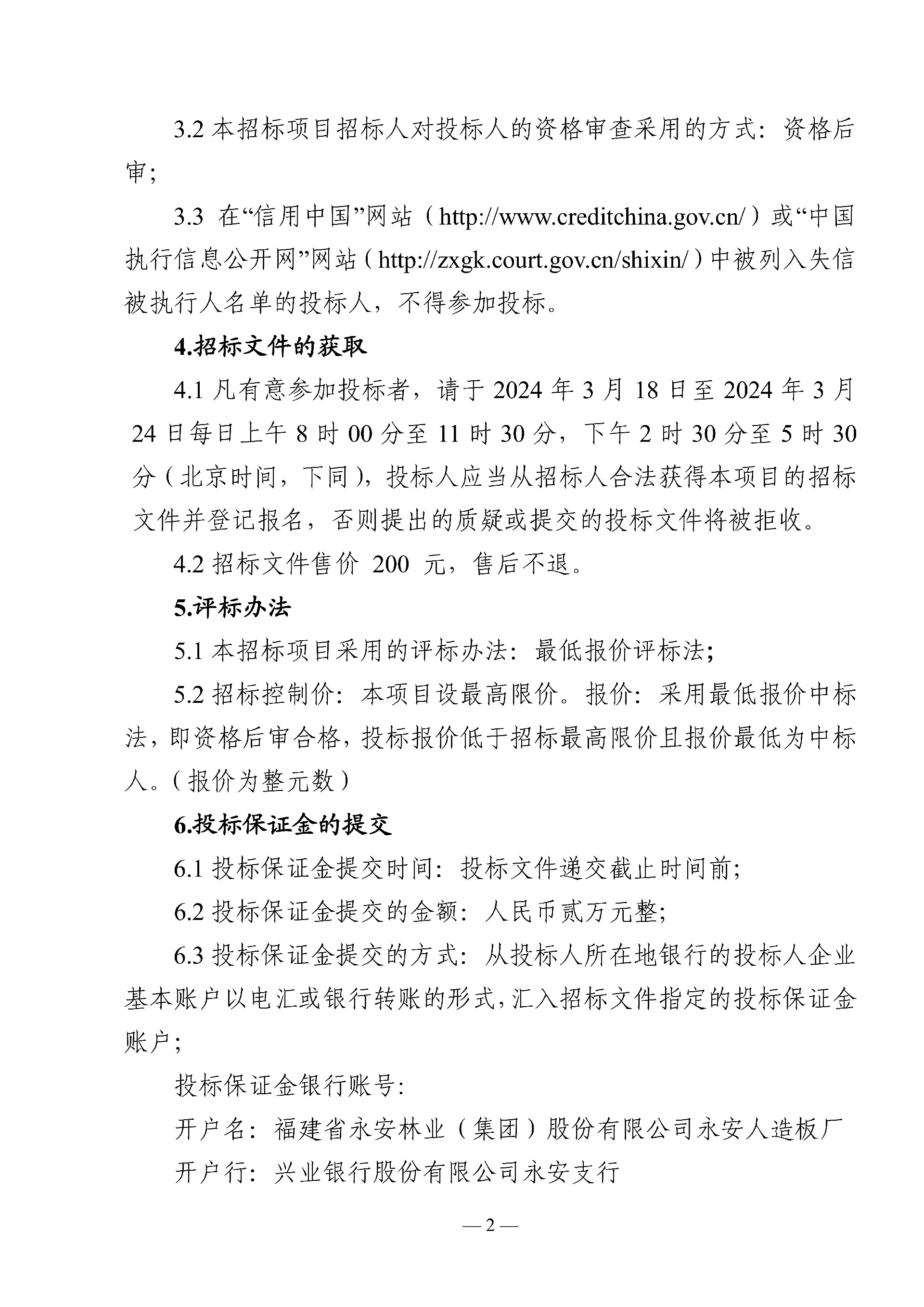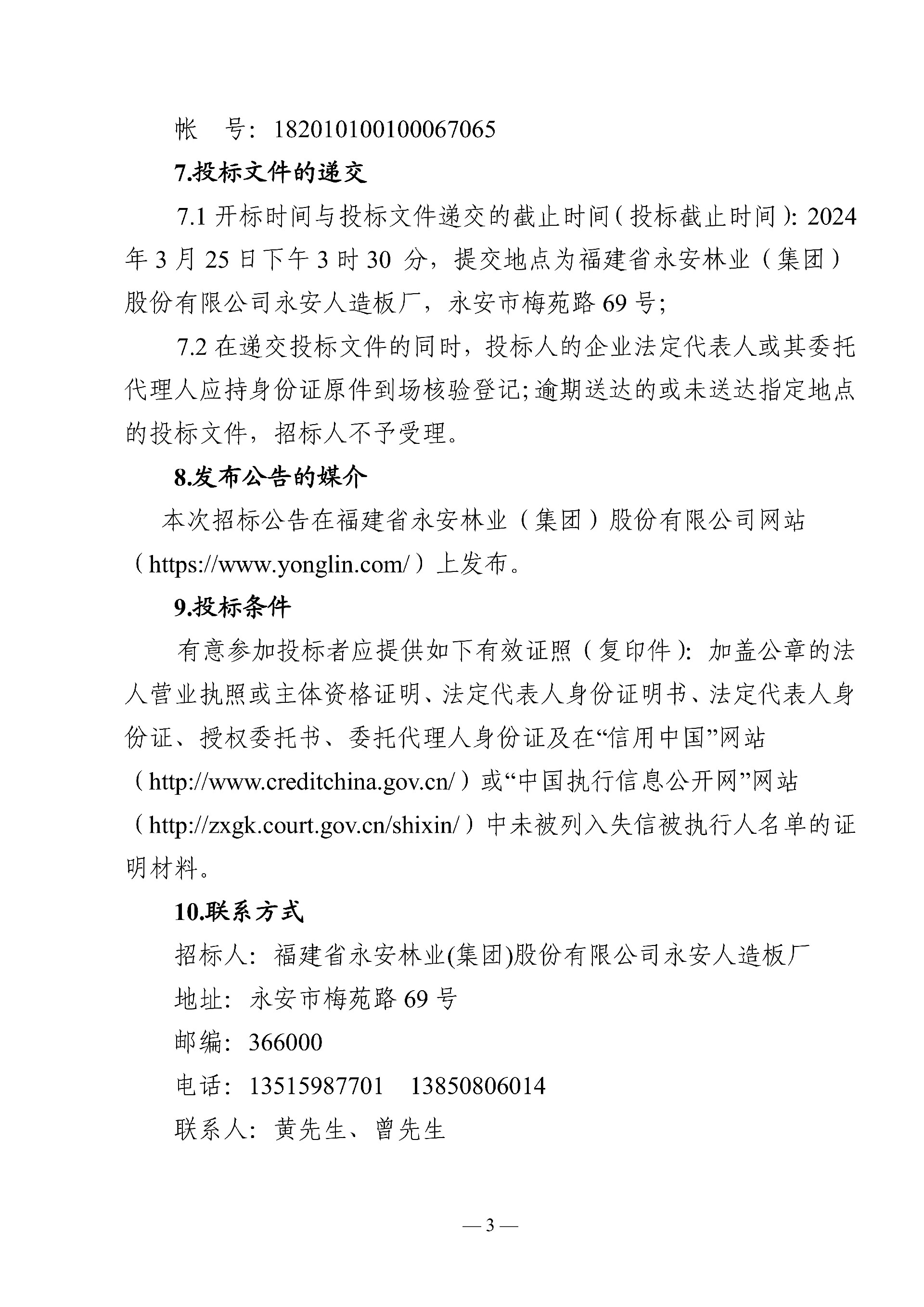永安人造板廠工業(yè)甲醛溶液采購項(xiàng)目招標(biāo)公告