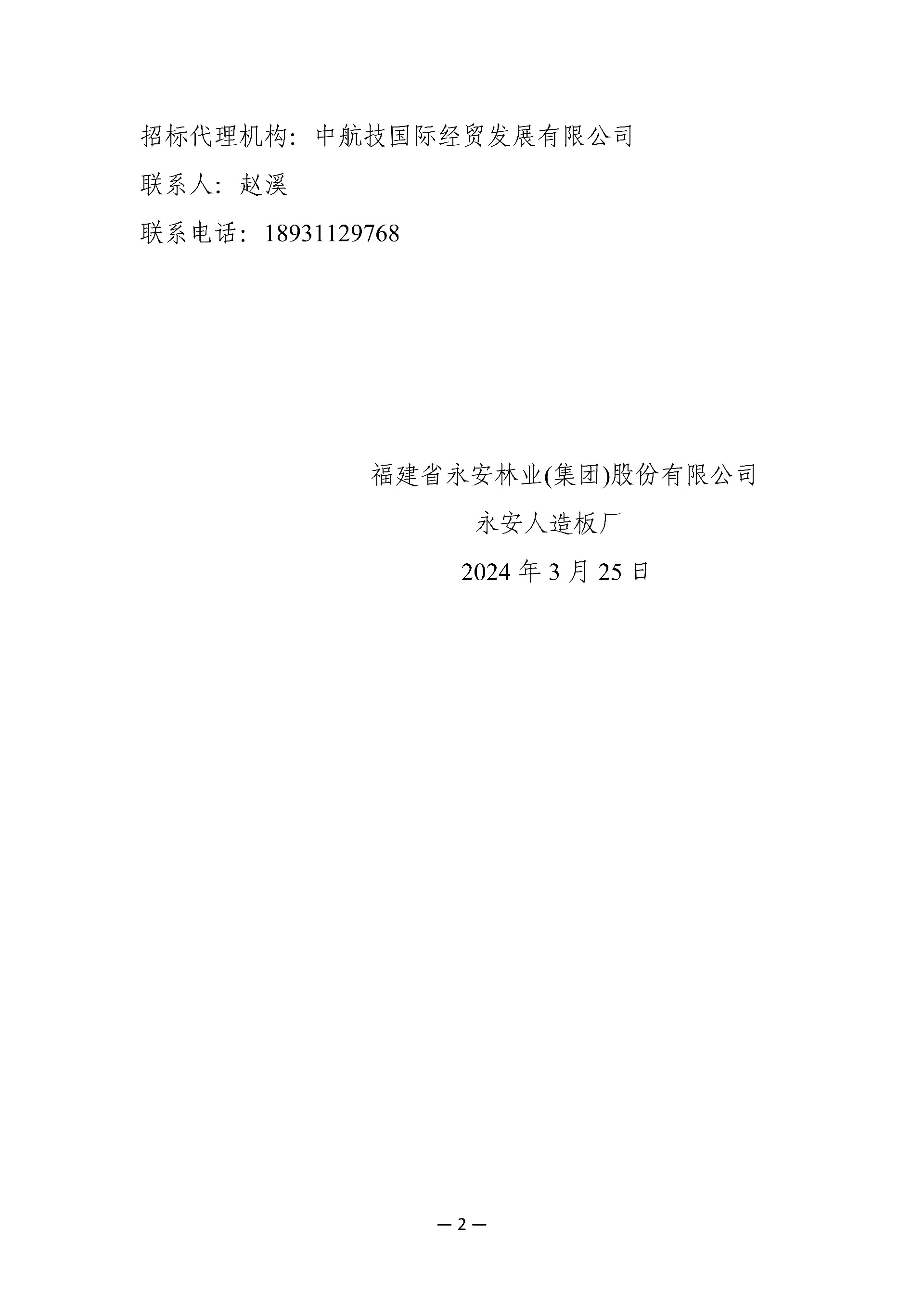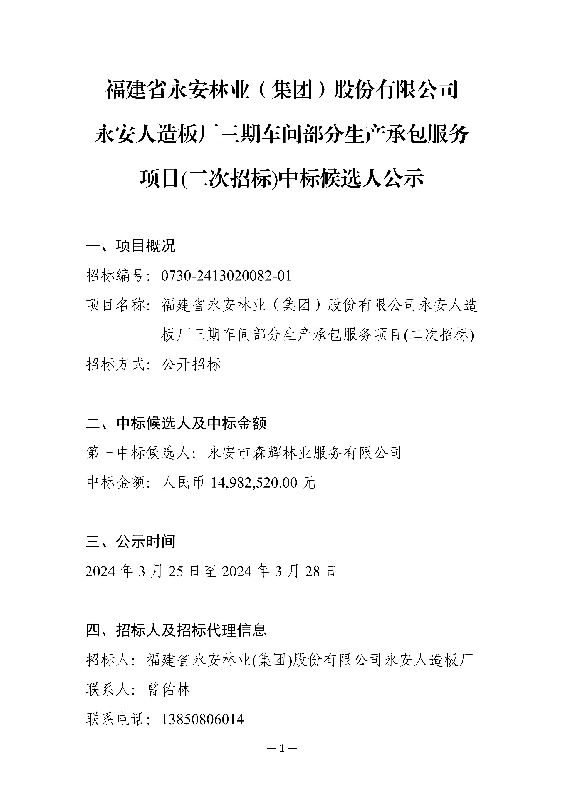 永安人造板廠三期車間部分生產承包服務項目(二次招標)中標候選人公示