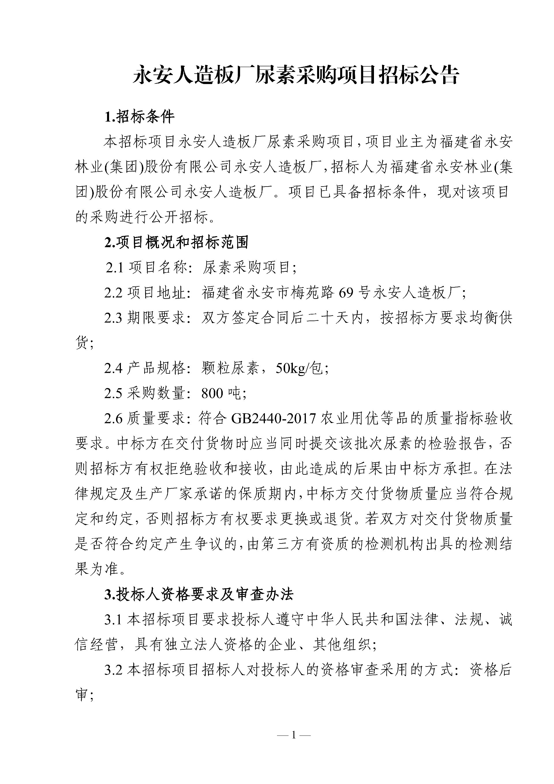 永安人造板廠尿素采購(gòu)項(xiàng)目招標(biāo)公告