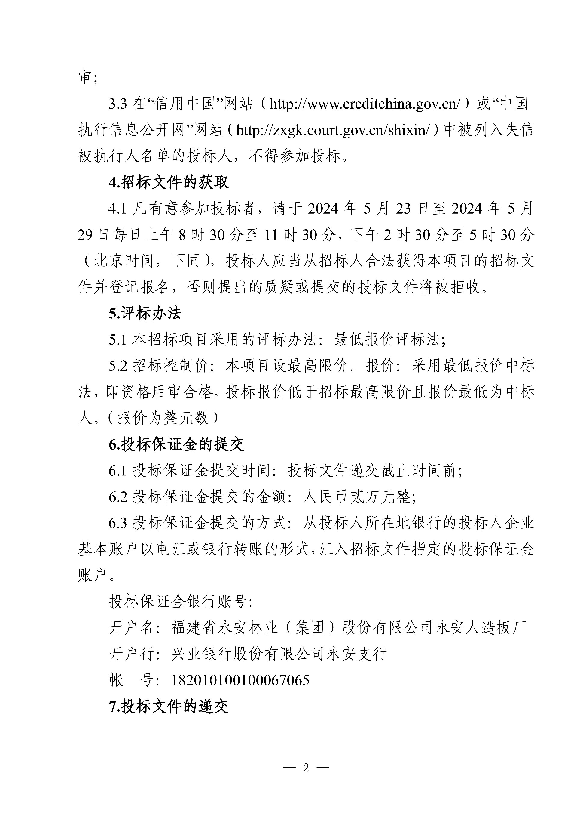 永安人造板廠工業甲醛溶液采購項目招標公告