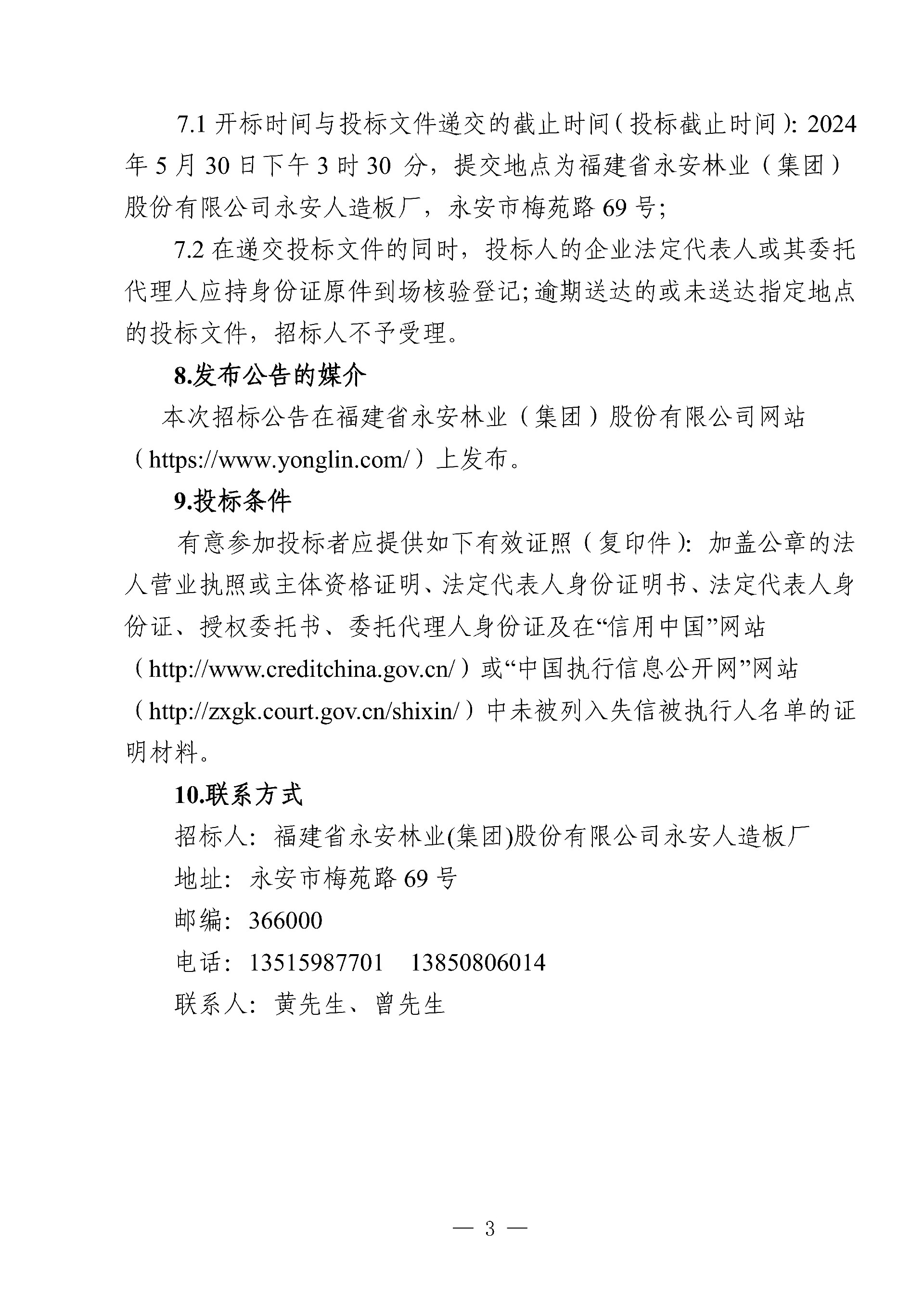 永安人造板廠尿素采購項目招標公告