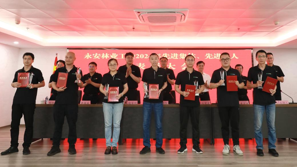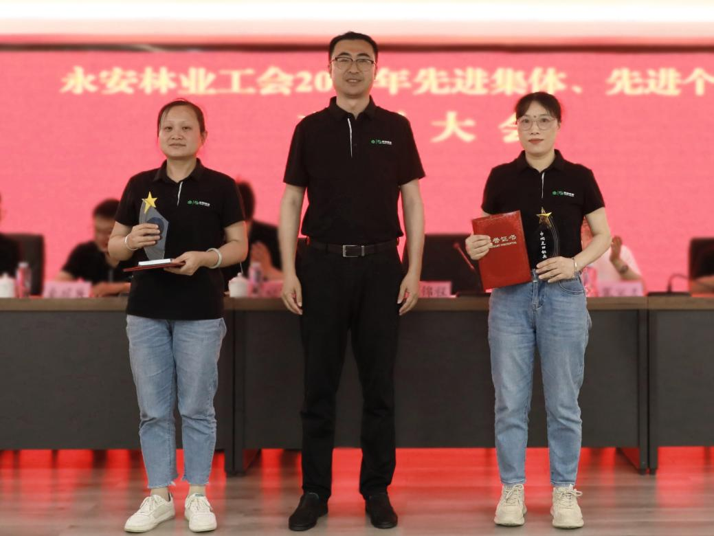 表彰儀式上,永安林業黨委領導班子成員、獨立董事共同為先進集體和先進個人代表頒獎。永安林業經理層、基層工會主席、職工代表等參加大會。