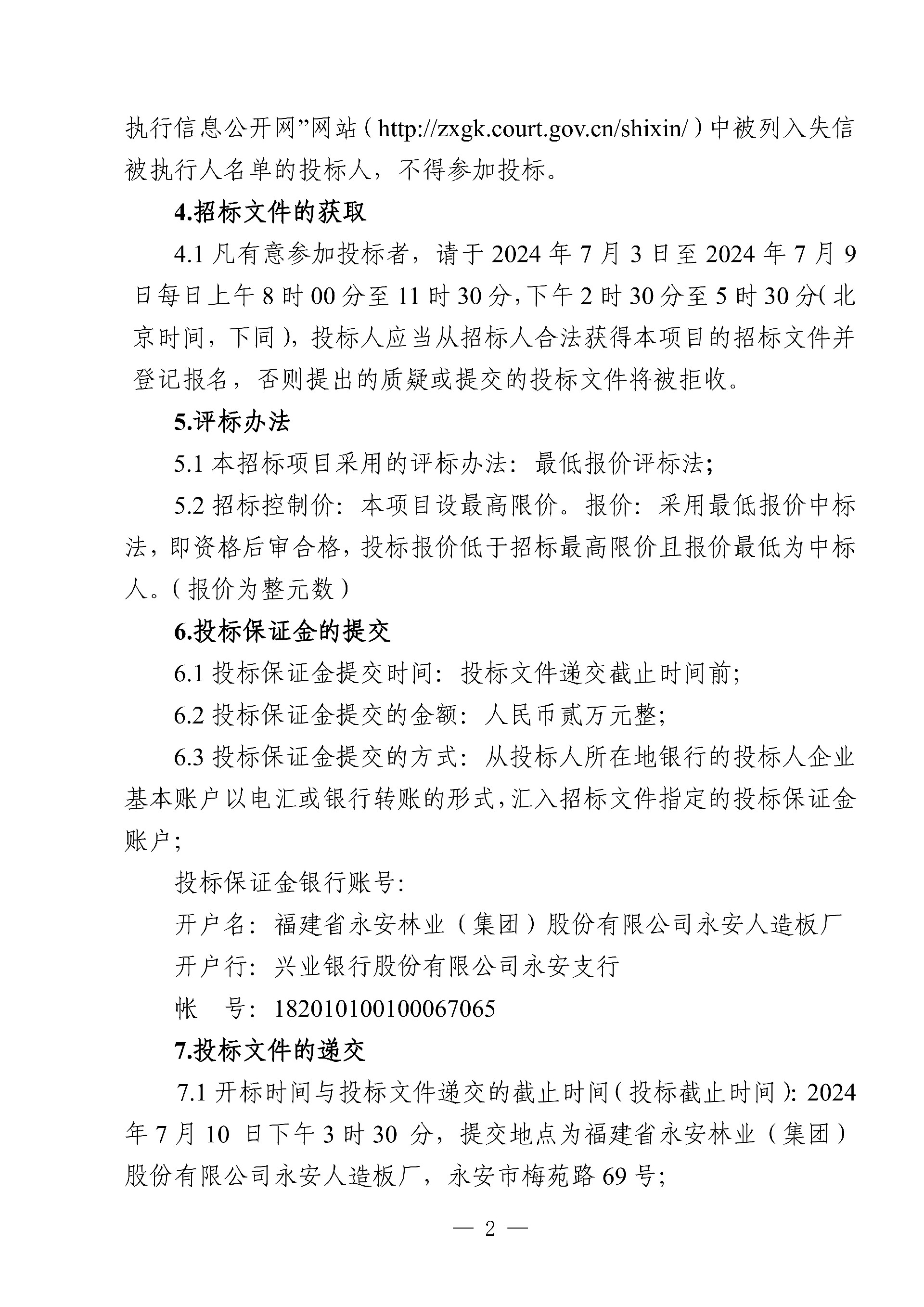 永安人造板廠三聚氰胺采購項目招標公告