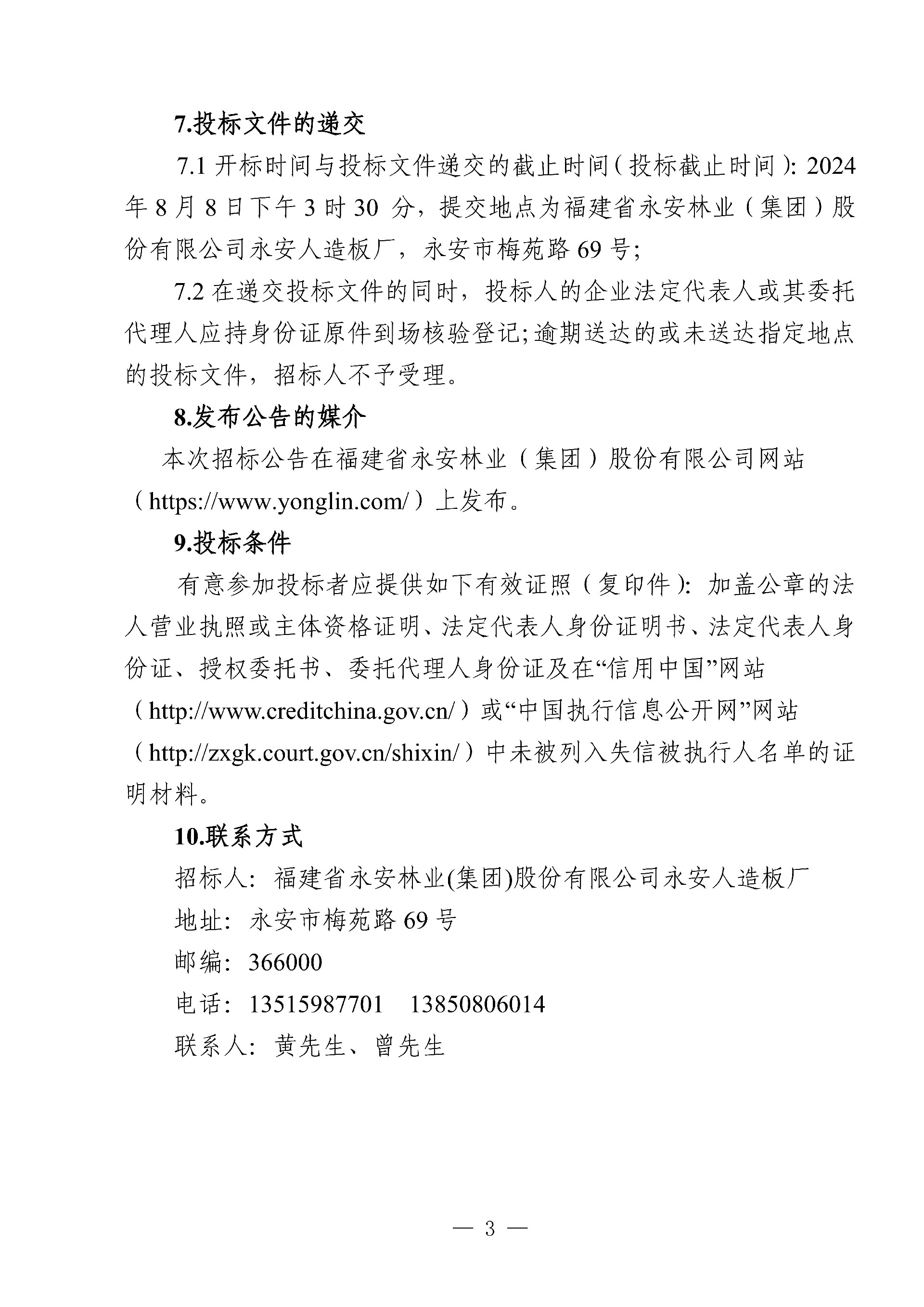 永安人造板廠工業甲醛溶液采購項目招標公告