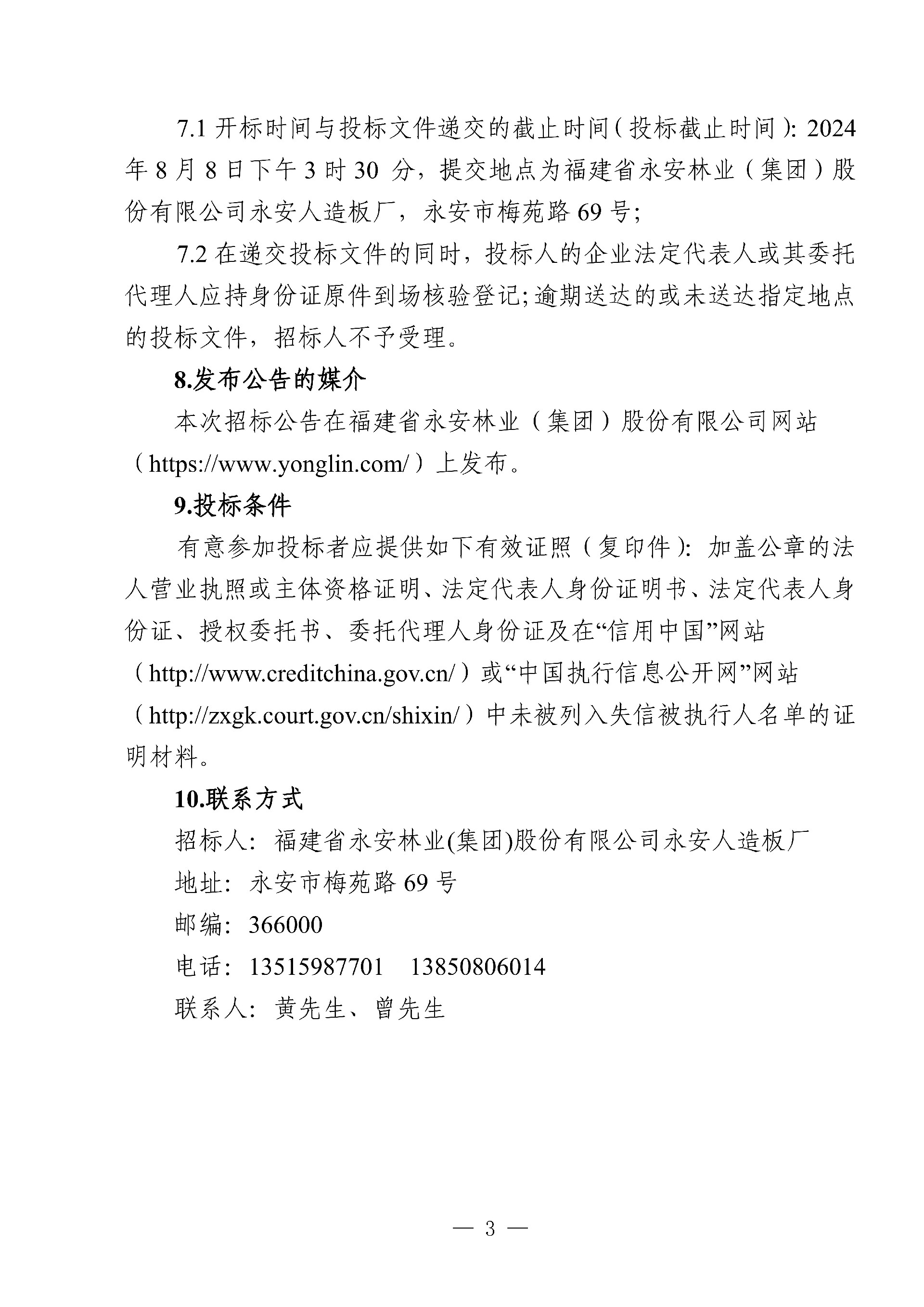 永安人造板廠工業甲醛溶液采購項目招標公告
