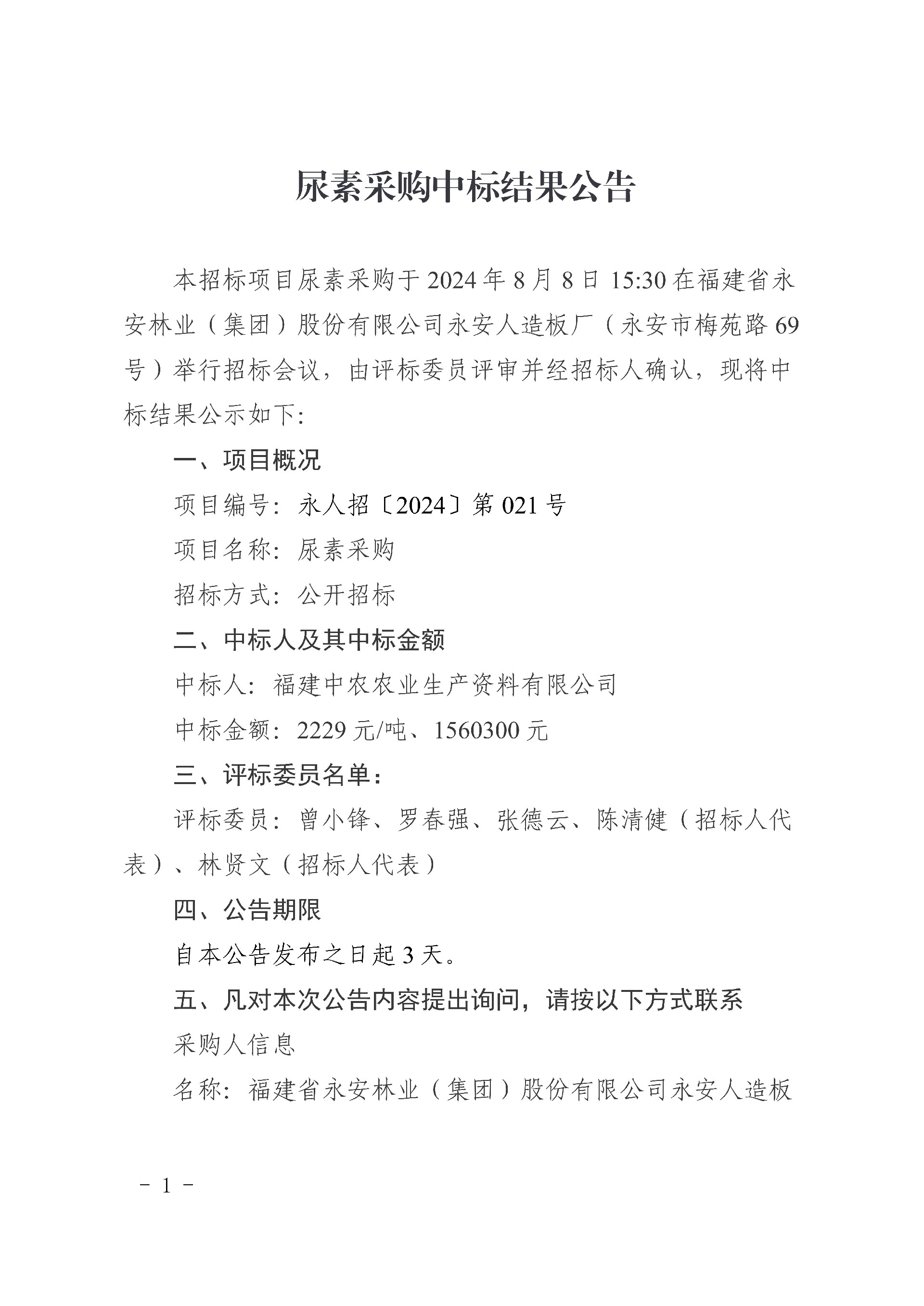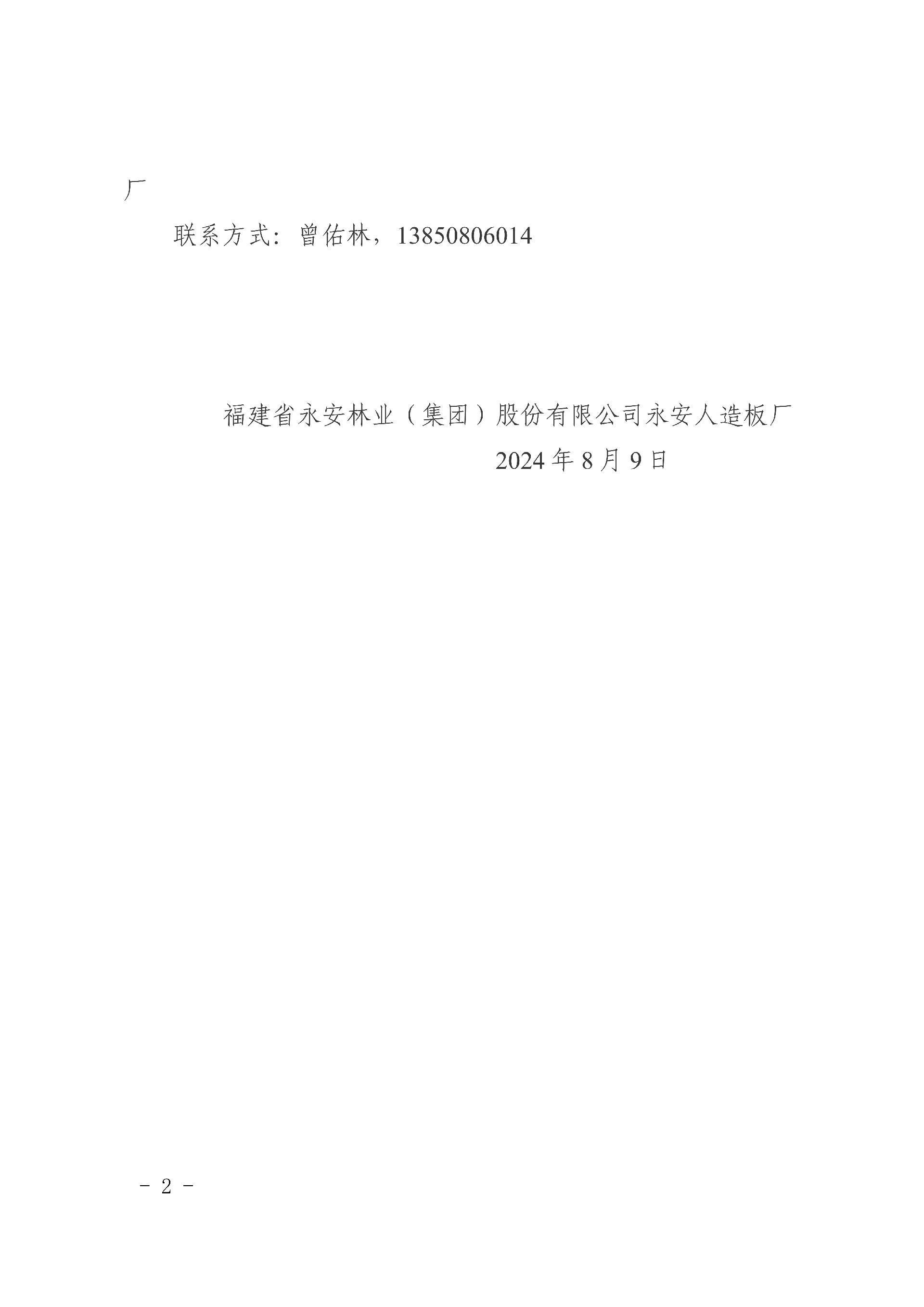 永安人造板廠工業甲醛溶液采購項目招標公告