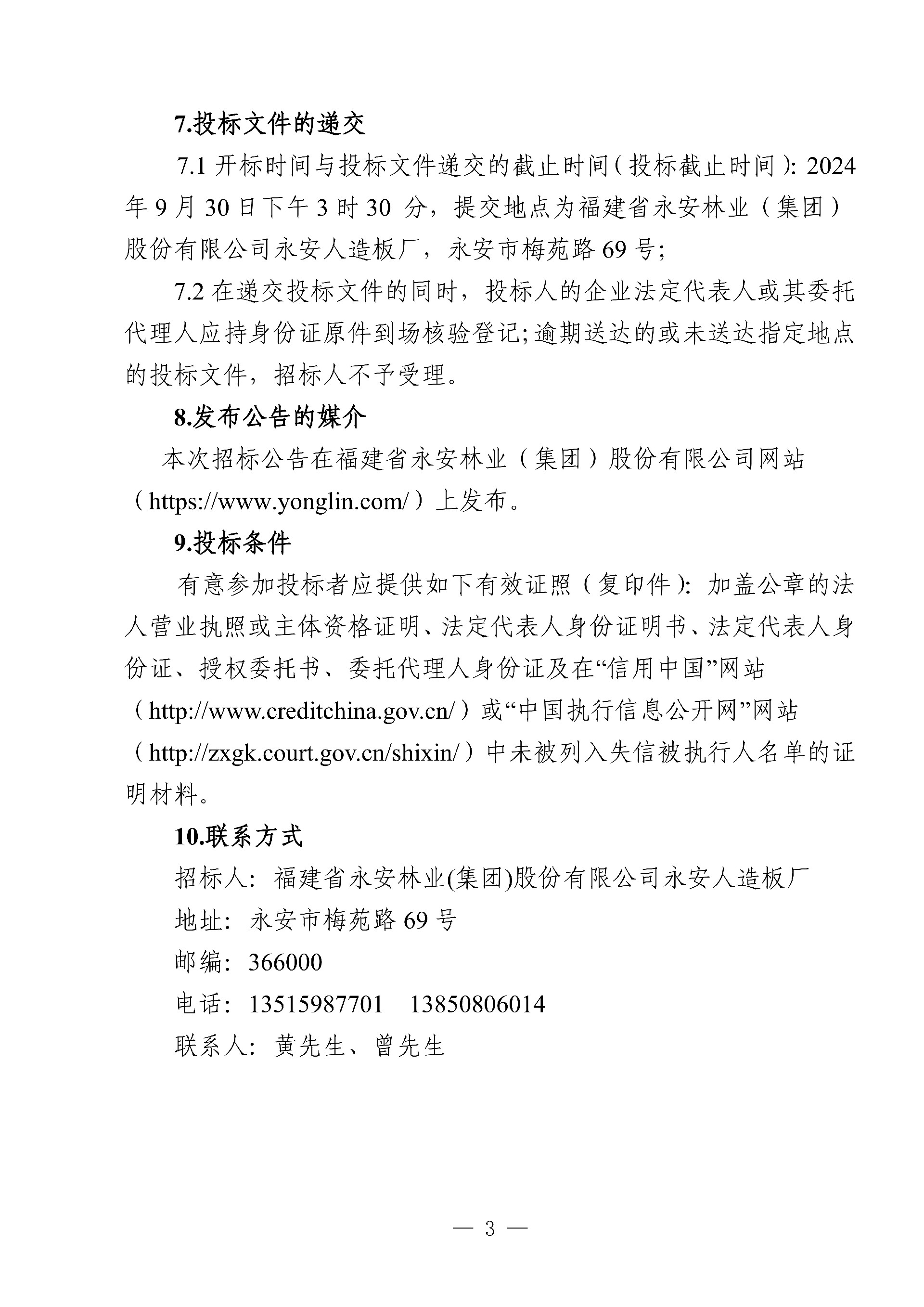 永安人造板廠工業(yè)甲醛溶液采購項(xiàng)目(二次招標(biāo))招標(biāo)公告