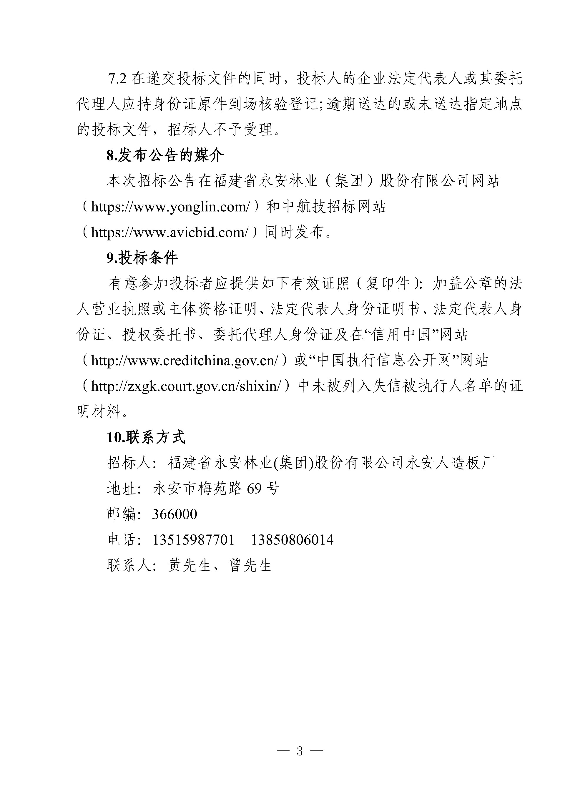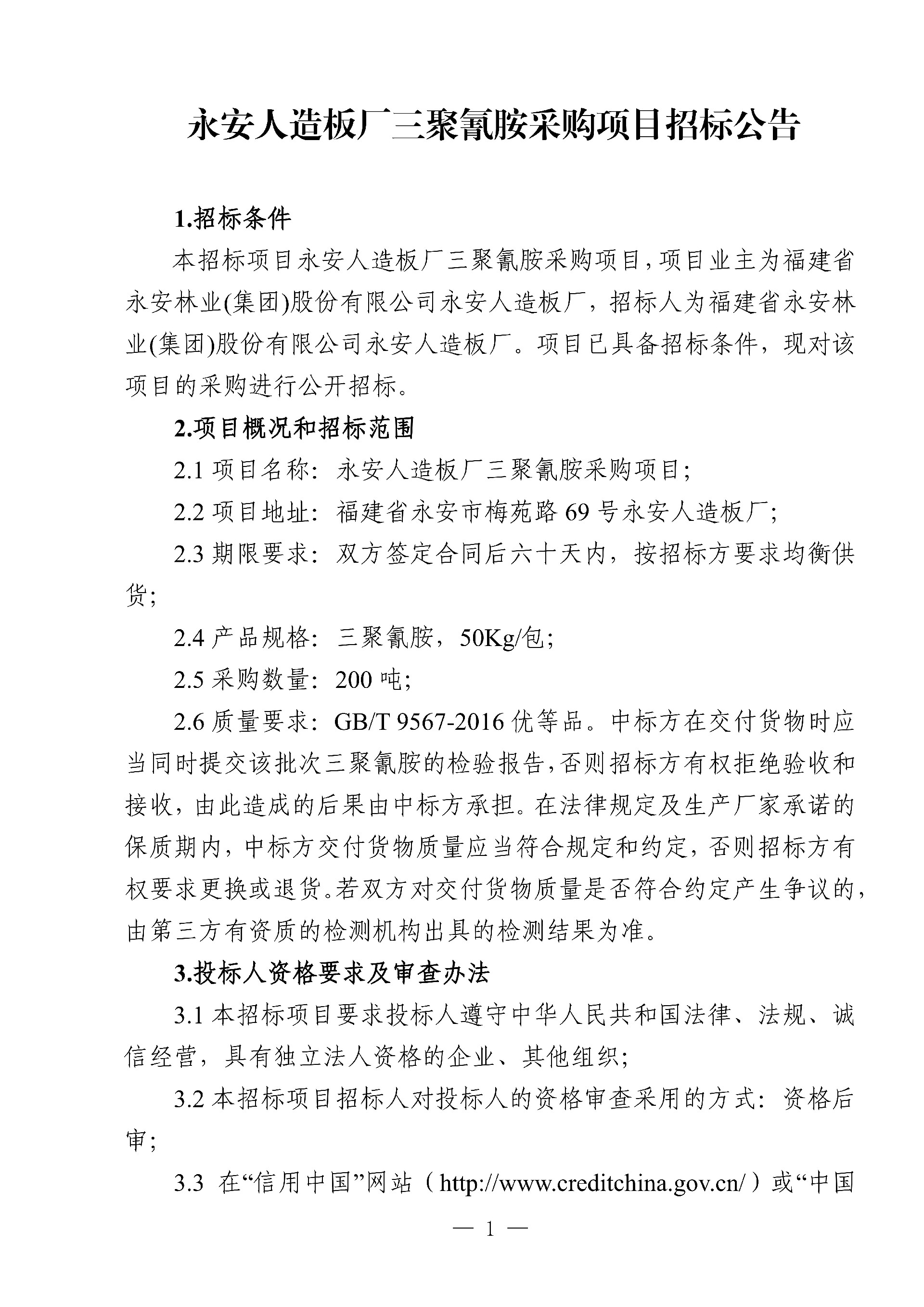 永安人造板廠三聚氰胺采購項(xiàng)目招標(biāo)公告