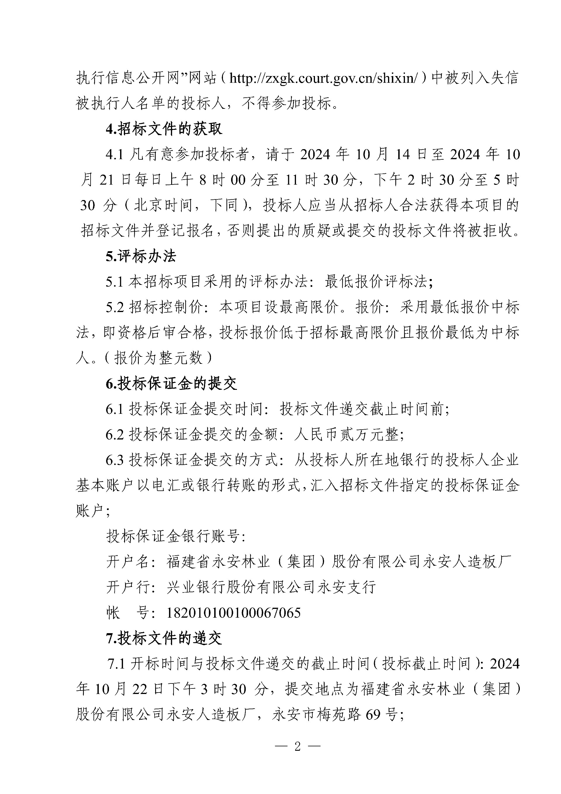永安人造板廠工業(yè)甲醛溶液采購項(xiàng)目招標(biāo)公告