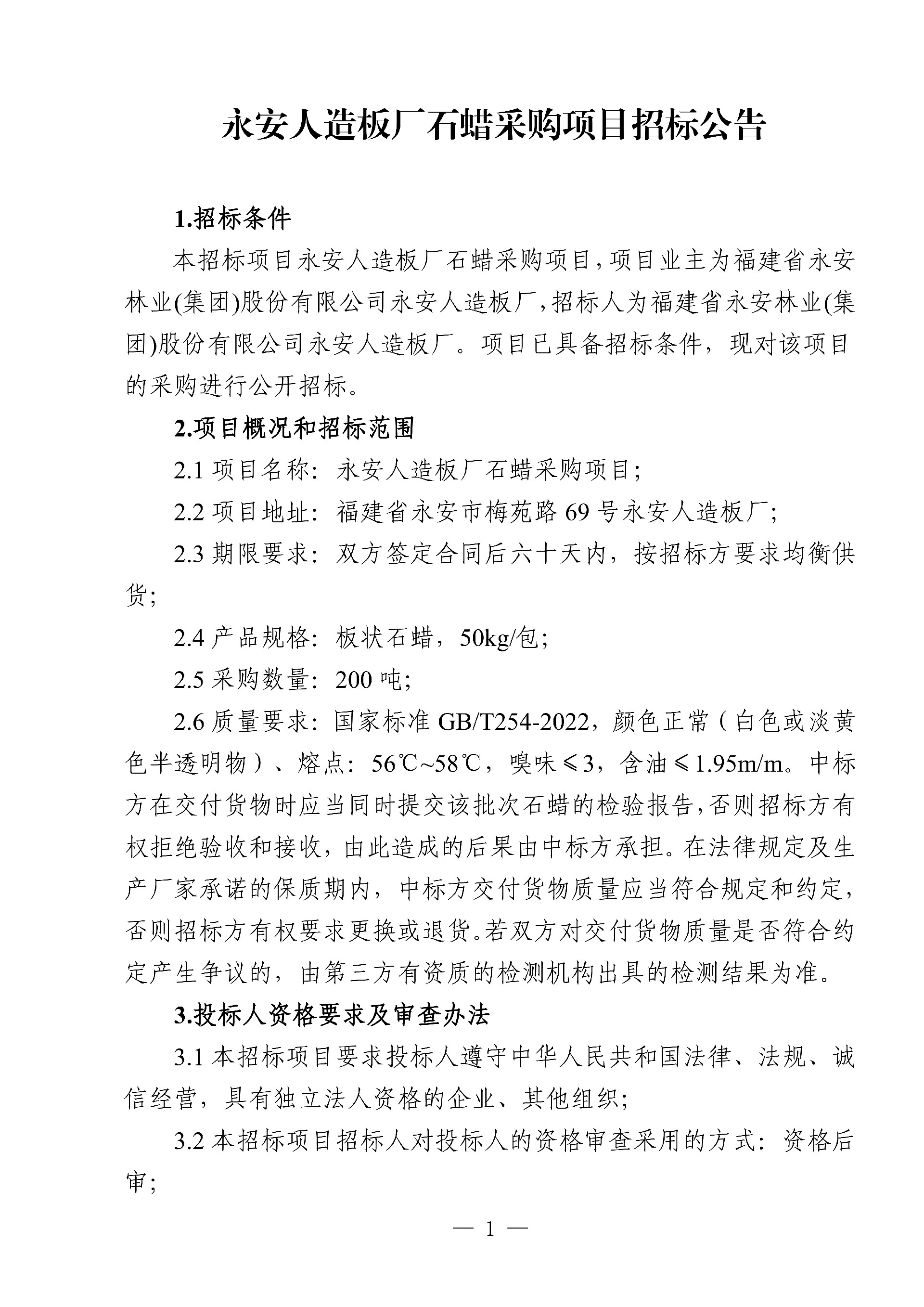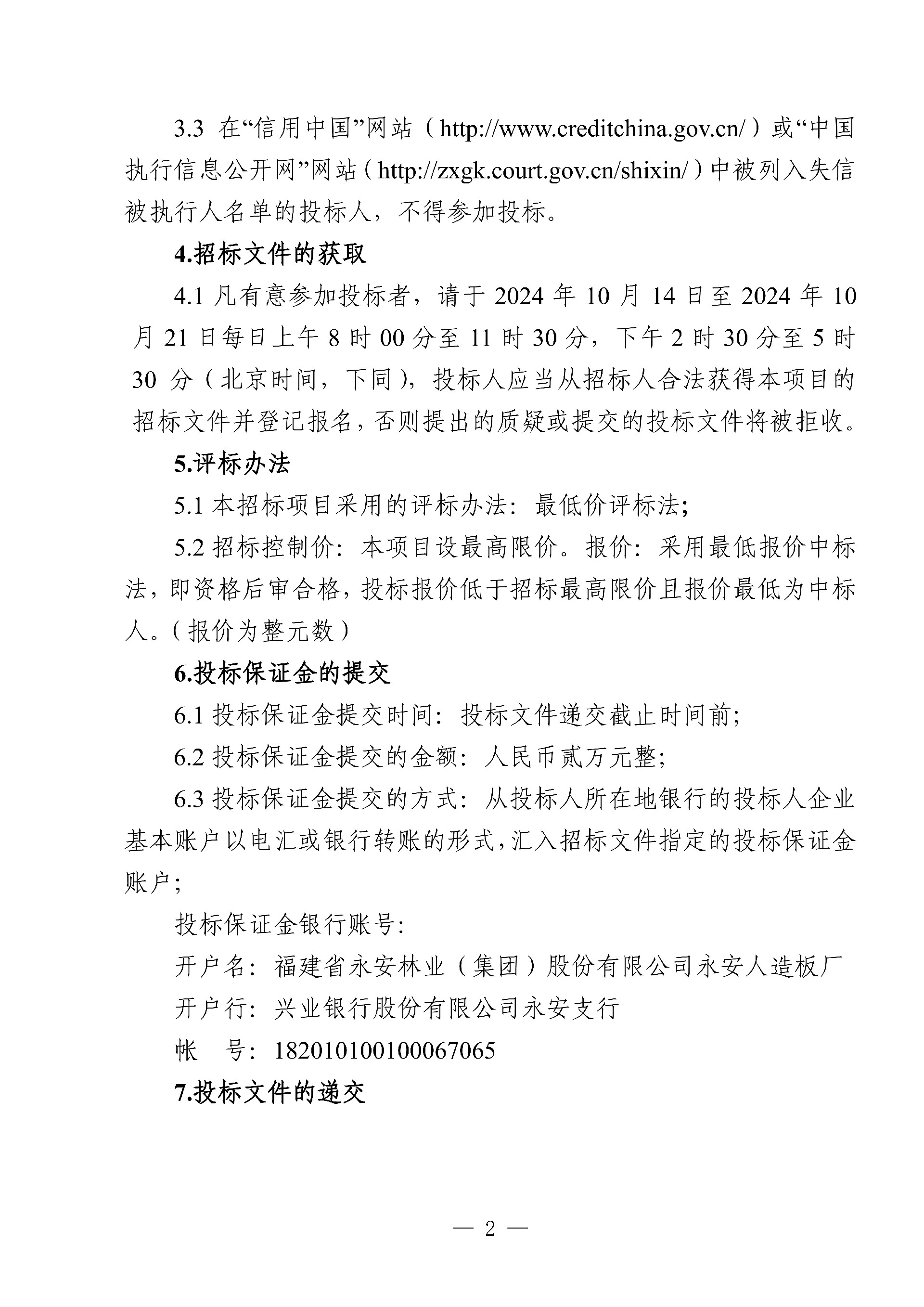 永安人造板廠工業甲醛溶液采購項目招標公告