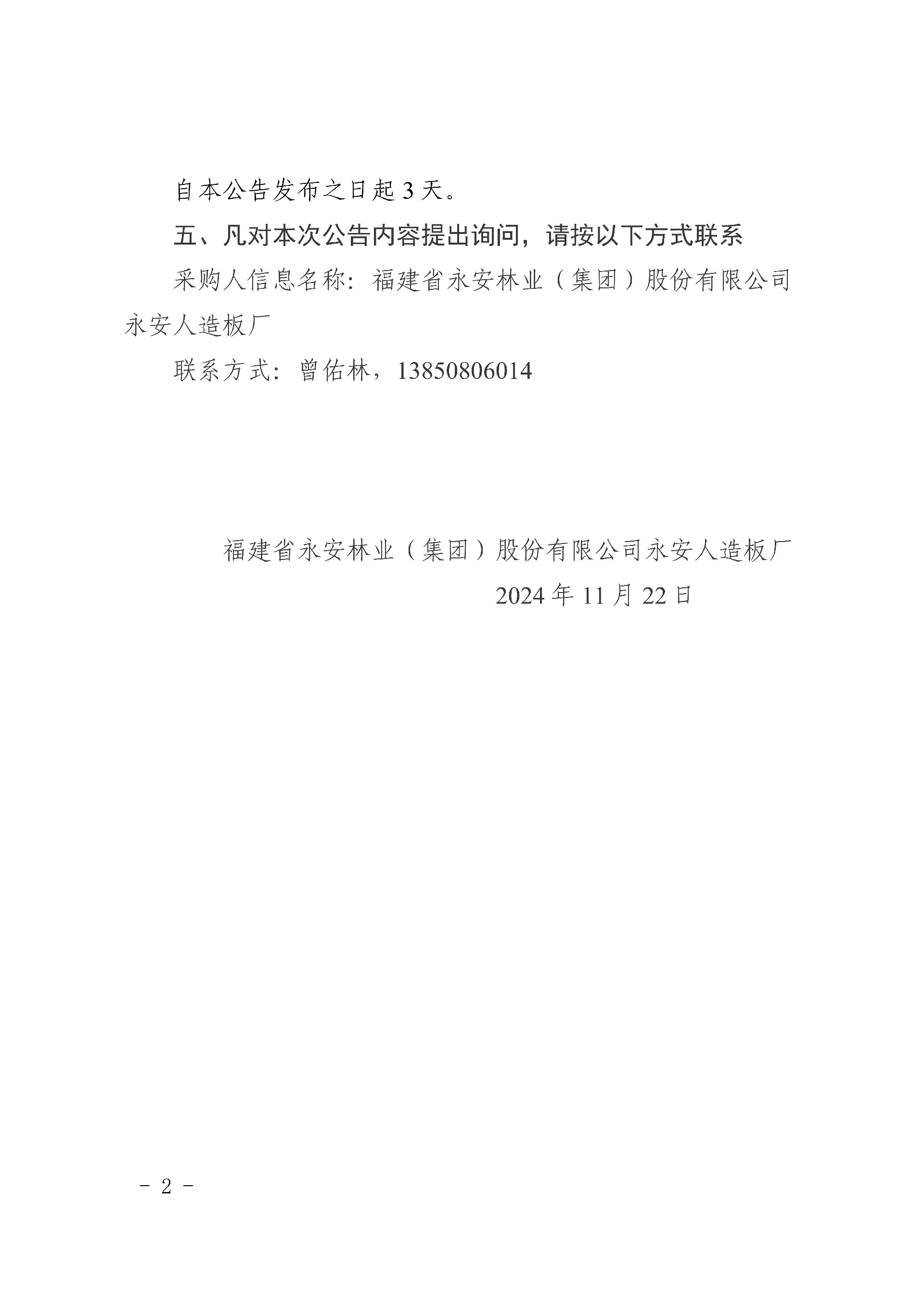 永安人造板廠工業甲醛溶液采購項目招標公告
