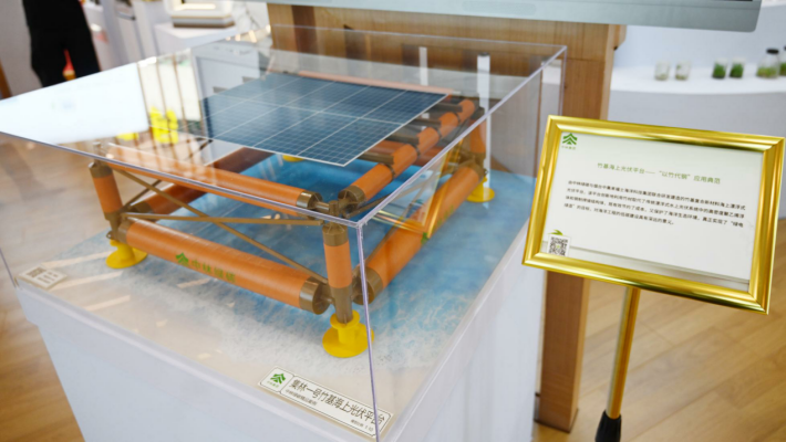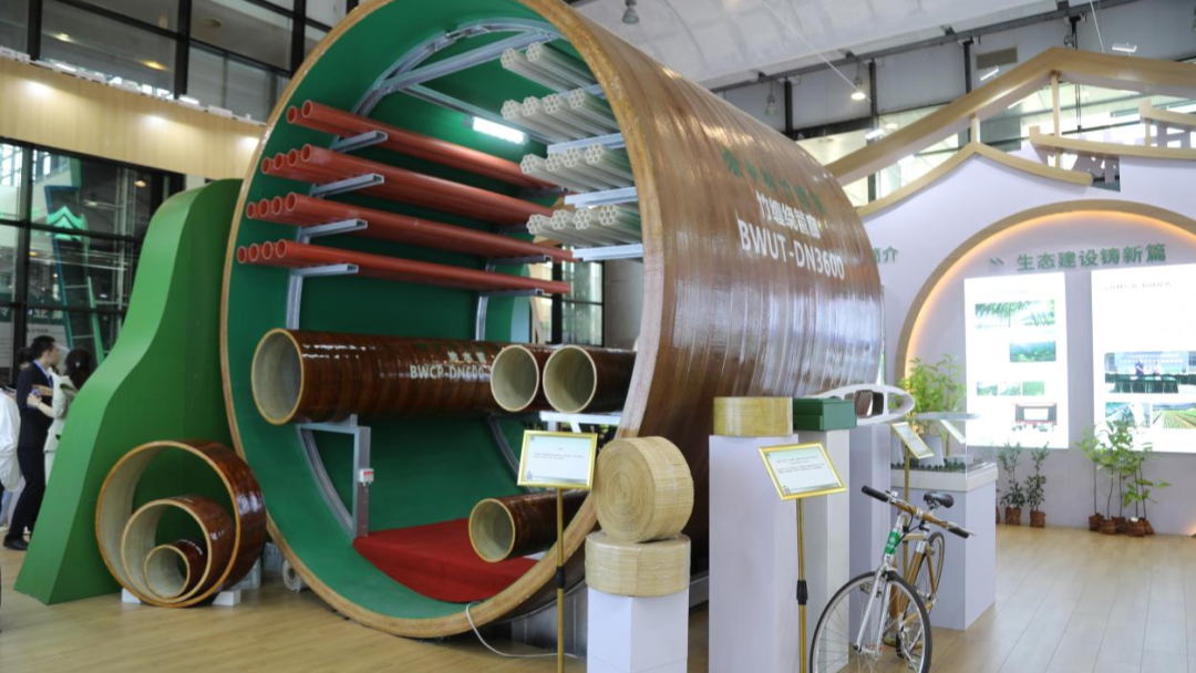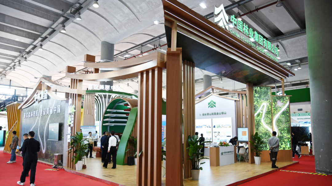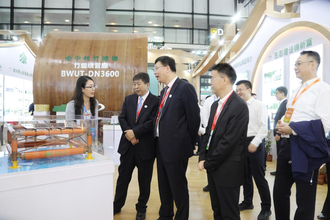 “科技創新引領新質生產力發展”成果展示是中林集團本次參展的一大亮點。展會現場,集團設立裝配式木竹結構建材、竹基復合材料和中林系列家居建材展區,展出一系列綠色低碳創新產品,如兼具低成本、高強度、低排放優勢,可供廣泛用于市政、水利、交通等領域的竹纏繞綜合管廊及竹纏繞復合管;環境友好、耐腐蝕、價低質優的竹基海上光伏平臺、冷卻塔竹格填料;具有節能固碳、保溫調濕、抗震防火等突出優勢的裝配式木竹結構建筑,高性能防水木地板、高品質人造飾面板和零醛零碳家居產品等,充分展現了中林集團強化技術研發創新,賦能林業新質生產力的豐富成果。