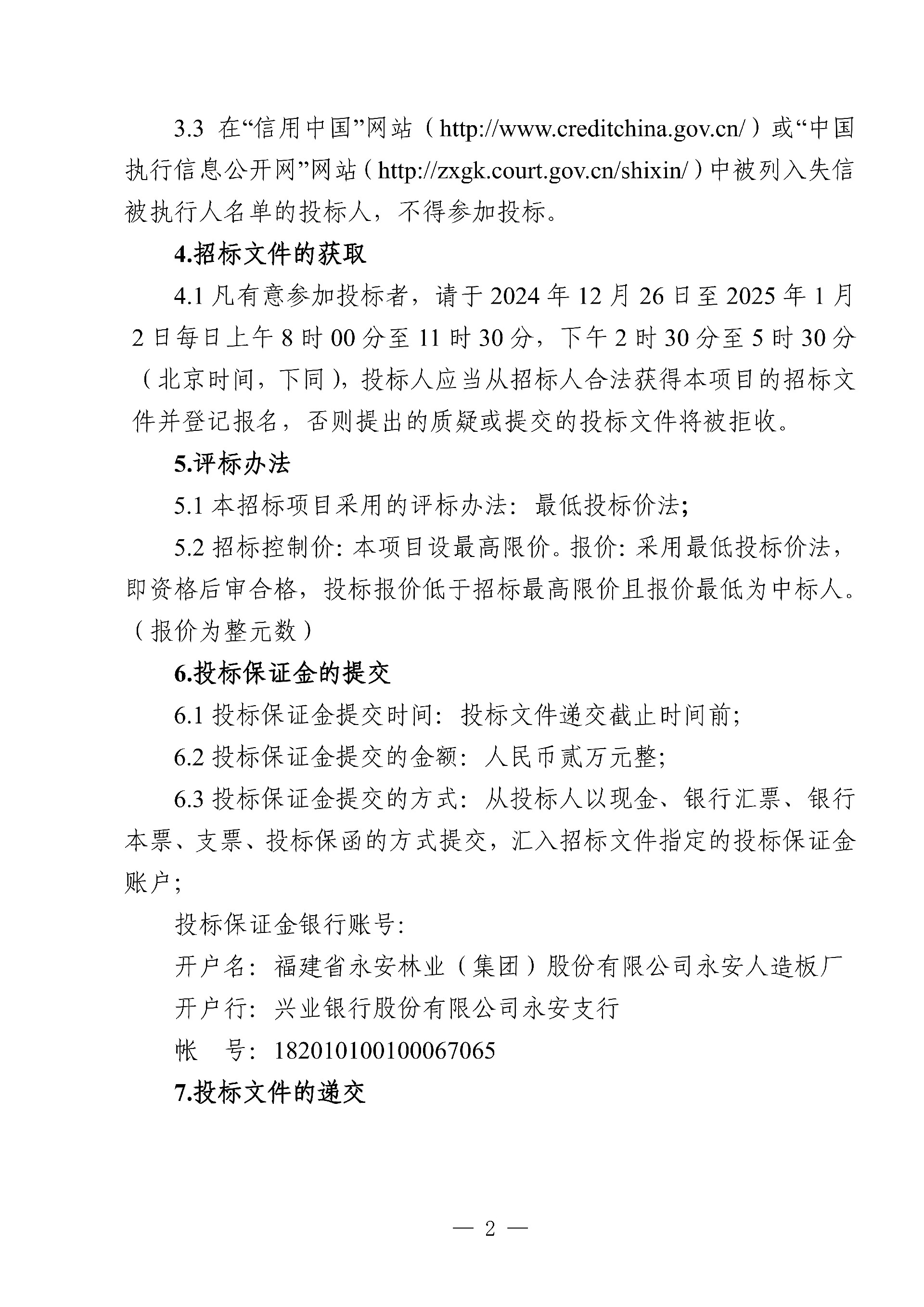 永安人造板廠工業甲醛溶液采購項目招標公告