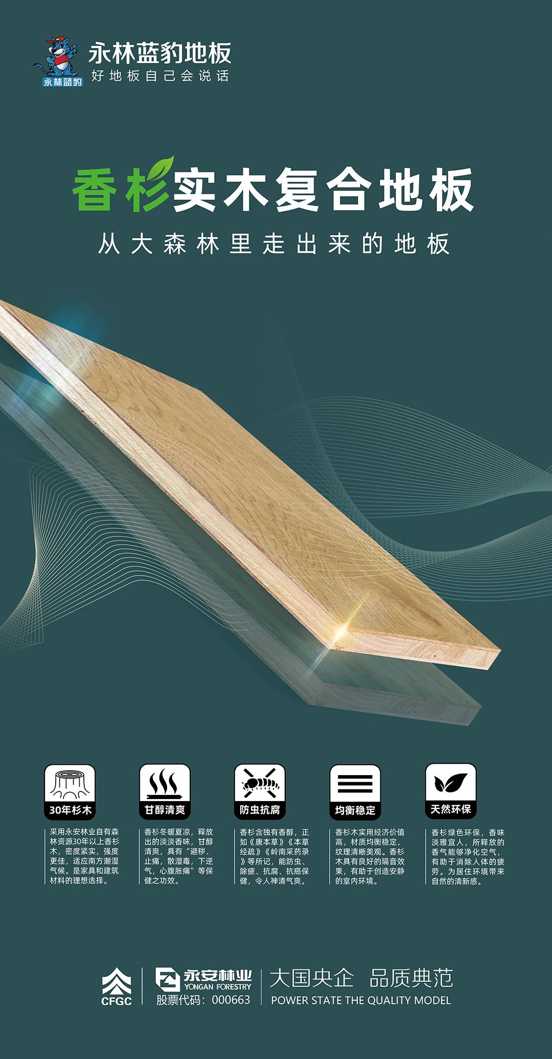 永林藍(lán)豹家居結(jié)合永安林業(yè)自有百萬畝優(yōu)質(zhì)森林的優(yōu)勢,精選含有香醇素、耐候性強(qiáng)、耐腐防蟲、穩(wěn)定性極佳的杉木為核心基材,開展實(shí)木復(fù)合地板研發(fā)攻關(guān),經(jīng)過無數(shù)次的實(shí)驗(yàn)和改進(jìn),成功攻克以杉木作為核心基材的實(shí)木復(fù)合地板生產(chǎn)技術(shù),并開發(fā)出“永林藍(lán)豹”香杉實(shí)木復(fù)合地板,該產(chǎn)品具有結(jié)構(gòu)穩(wěn)定、使用壽命長,且易于清潔的優(yōu)勢。