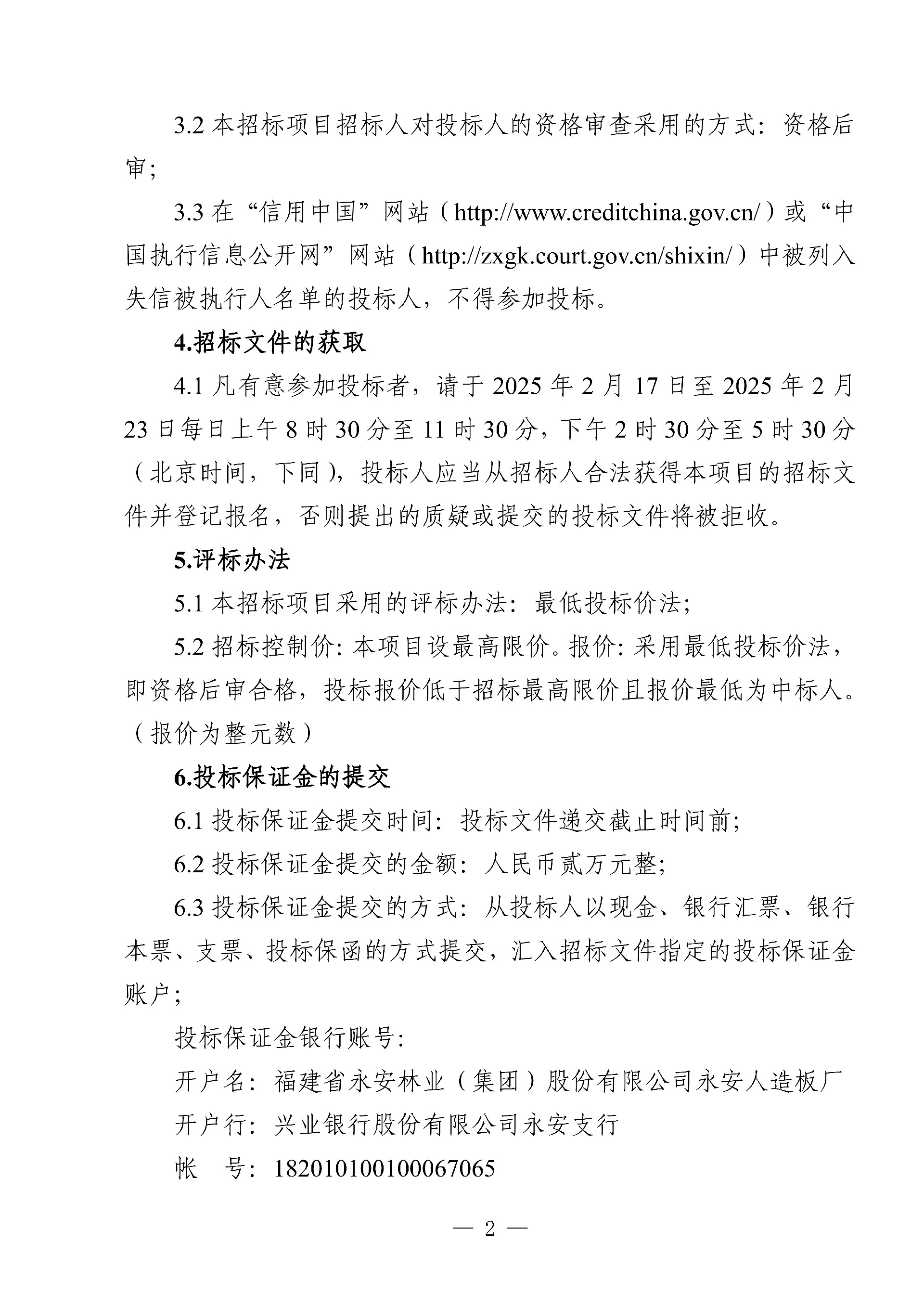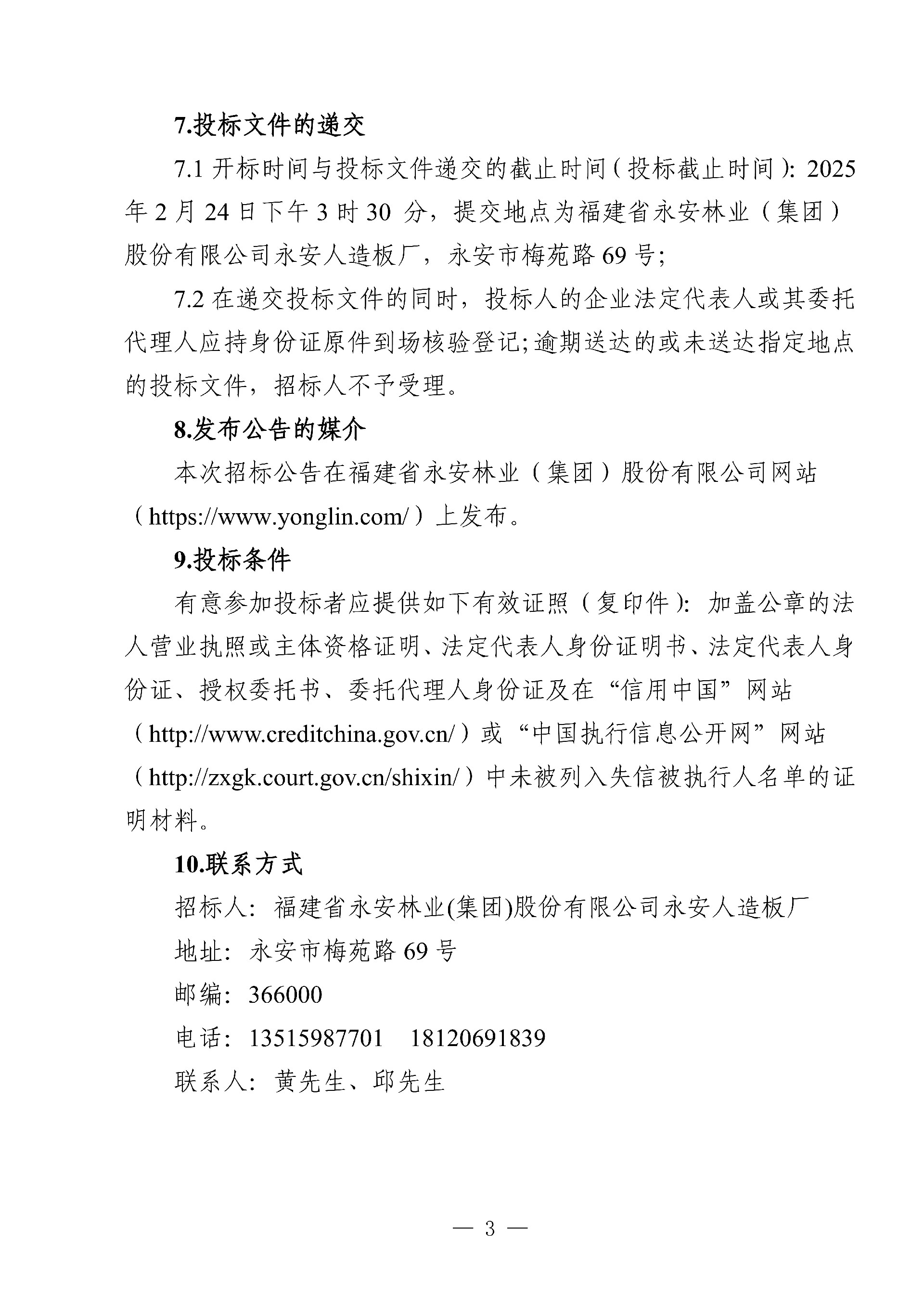 永安人造板廠工業甲醛溶液采購項目招標公告