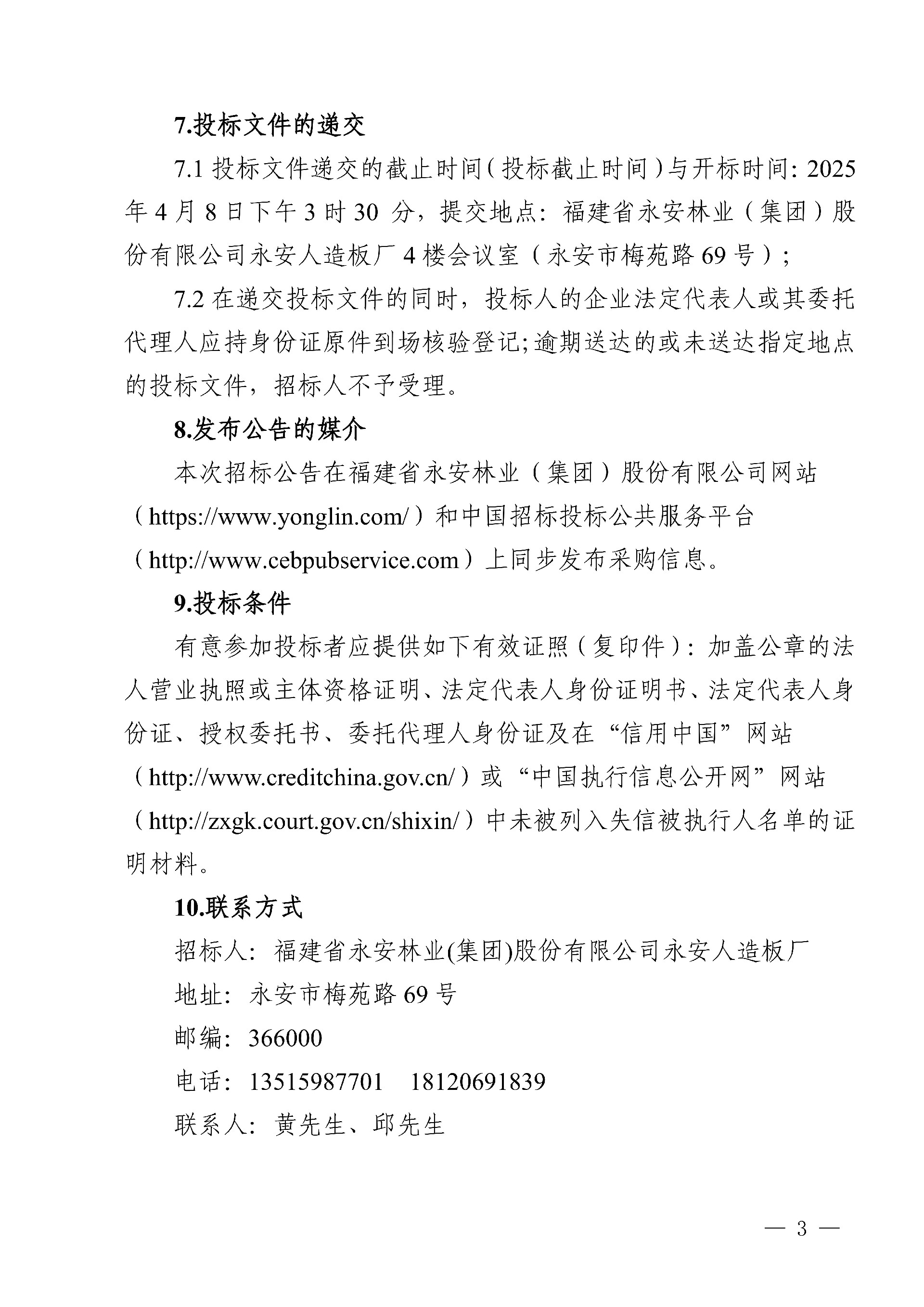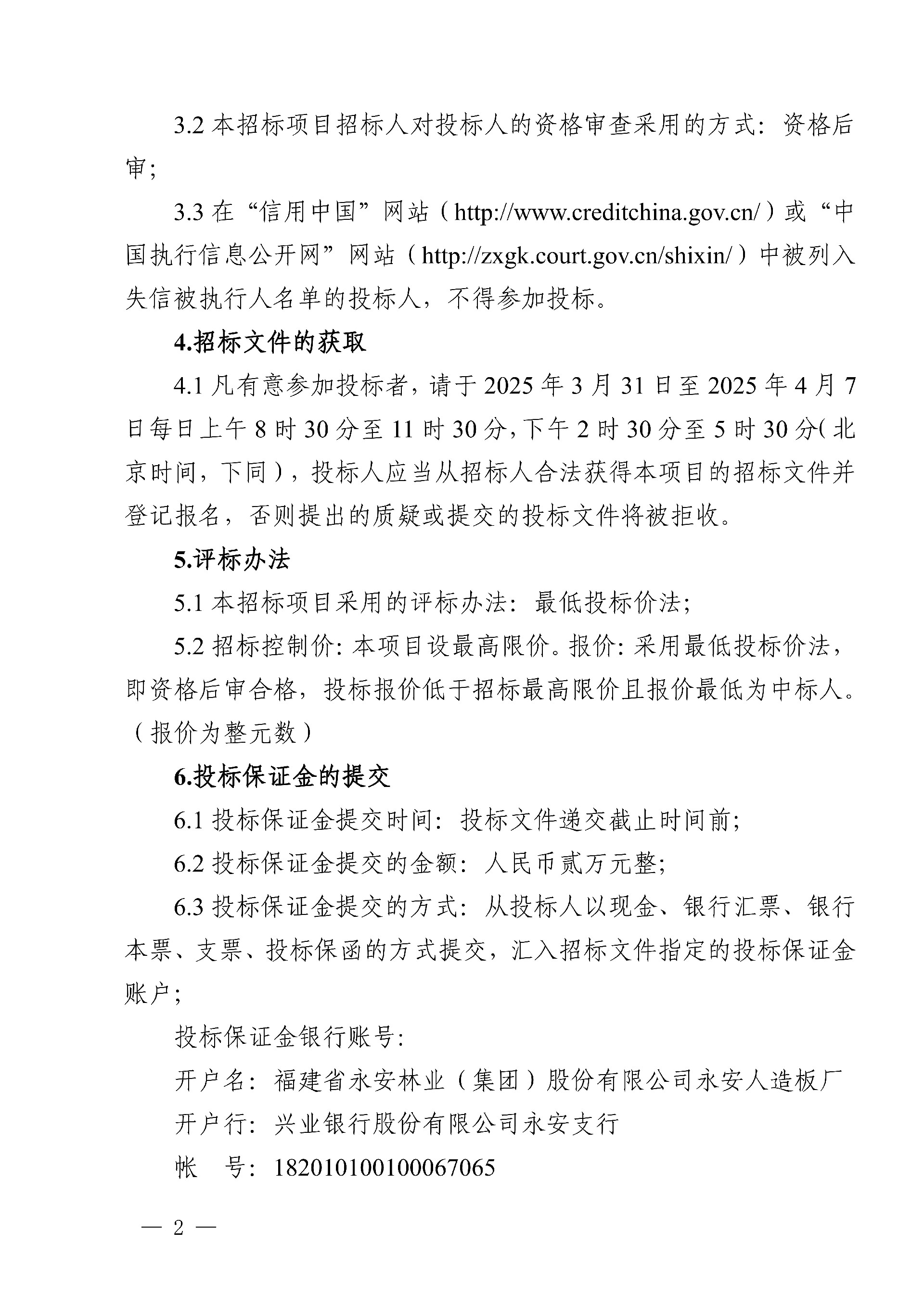 永安人造板廠工業甲醛溶液采購項目招標公告