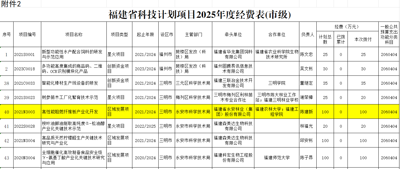 近日,福建省財政廳、福建省科學(xué)技術(shù)廳聯(lián)合下發(fā)《關(guān)于下達(dá)2025年省科技計劃項(xiàng)目年度經(jīng)費(fèi)(市級)的通知》(閩財教〔2025〕10號),永安林業(yè)申報的“高性能阻燃纖維板產(chǎn)業(yè)化開發(fā)”項(xiàng)目獲得省級財政資金支持。該資金的到位將有力推動永安林業(yè)在高性能阻燃纖維板領(lǐng)域的產(chǎn)業(yè)化進(jìn)程,提升產(chǎn)品市場競爭力。