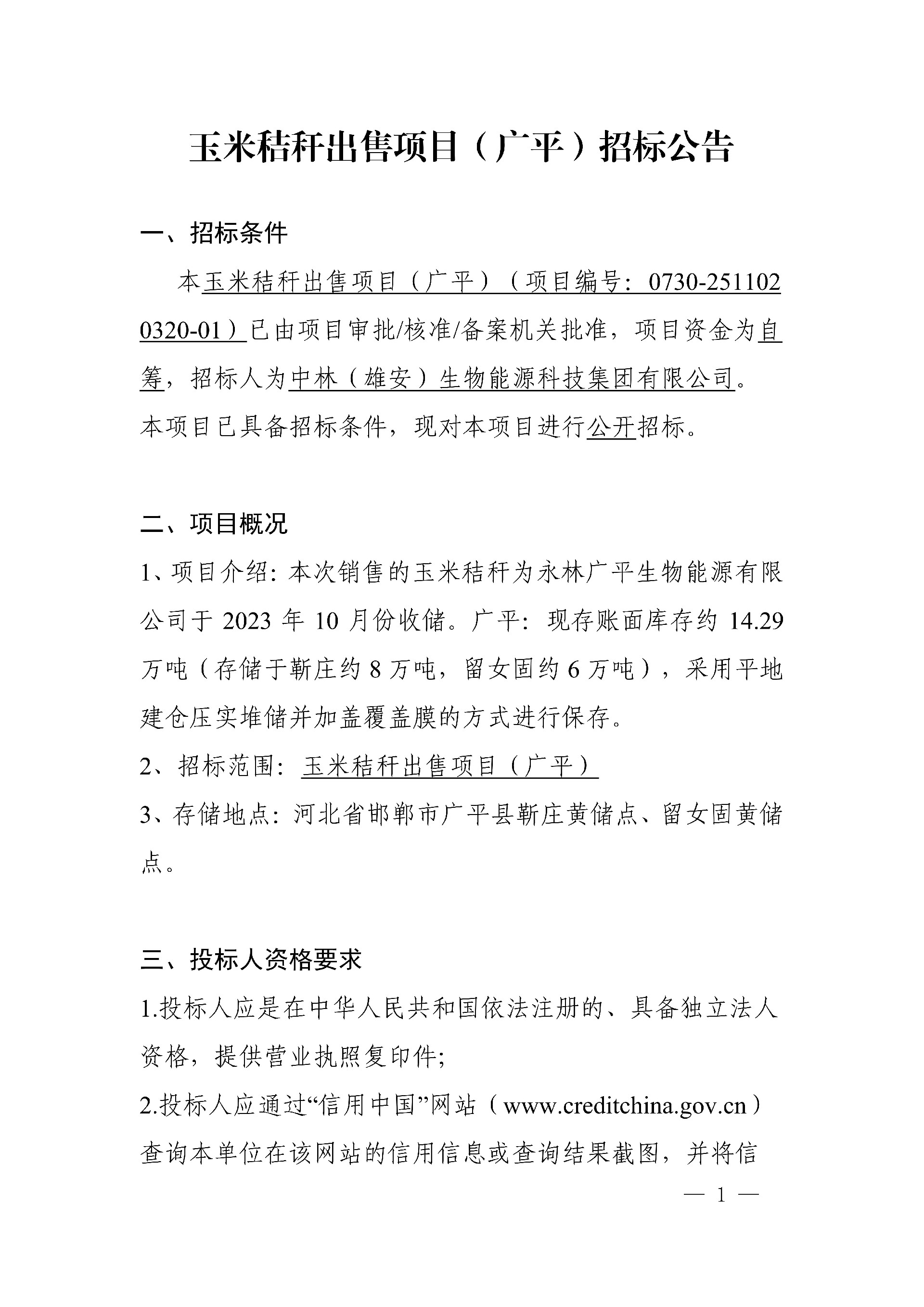 玉米秸稈出售項目(涿州)招標公告(二次招標)