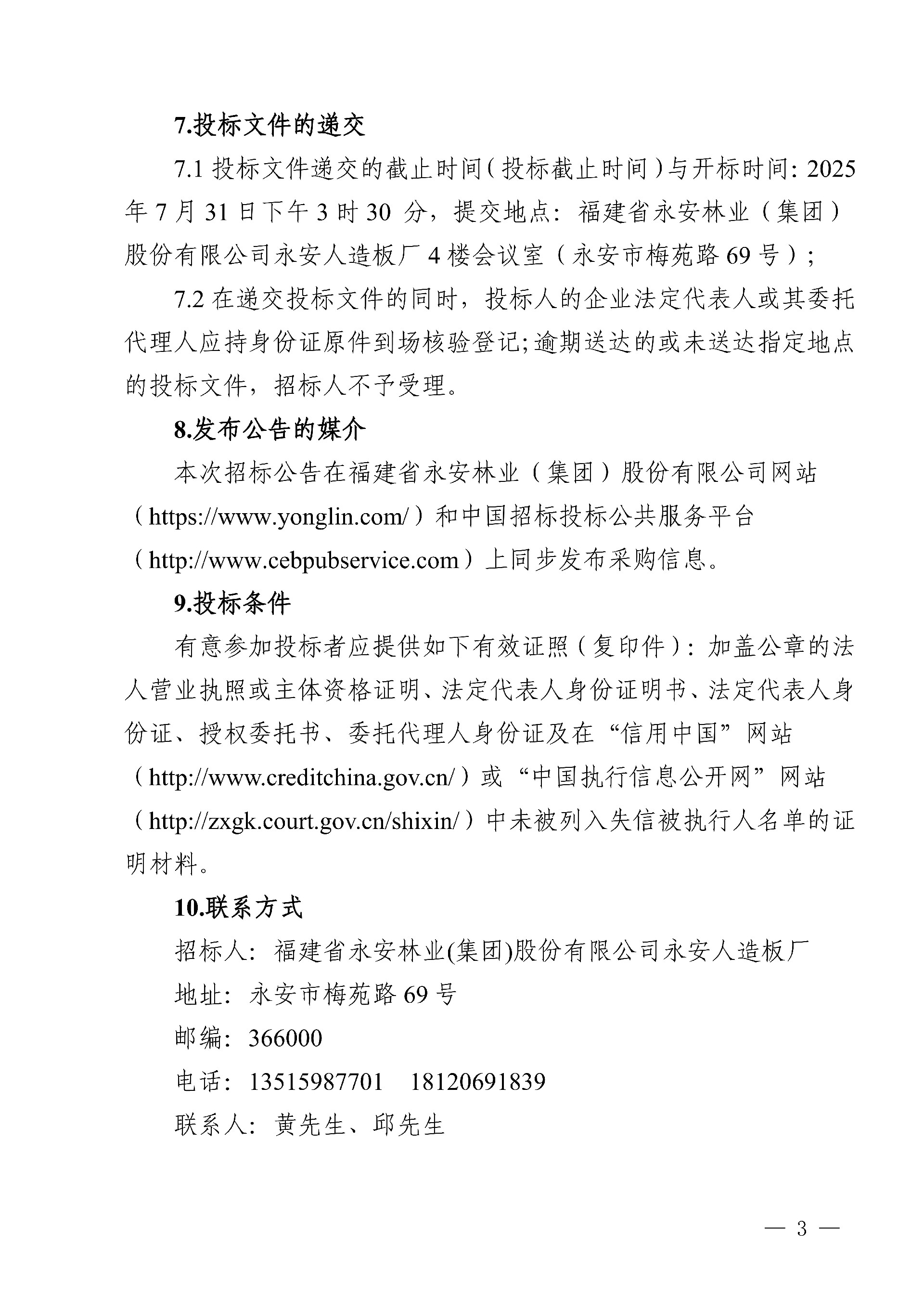 永安人造板廠工業(yè)甲醛溶液采購項(xiàng)目招標(biāo)公告