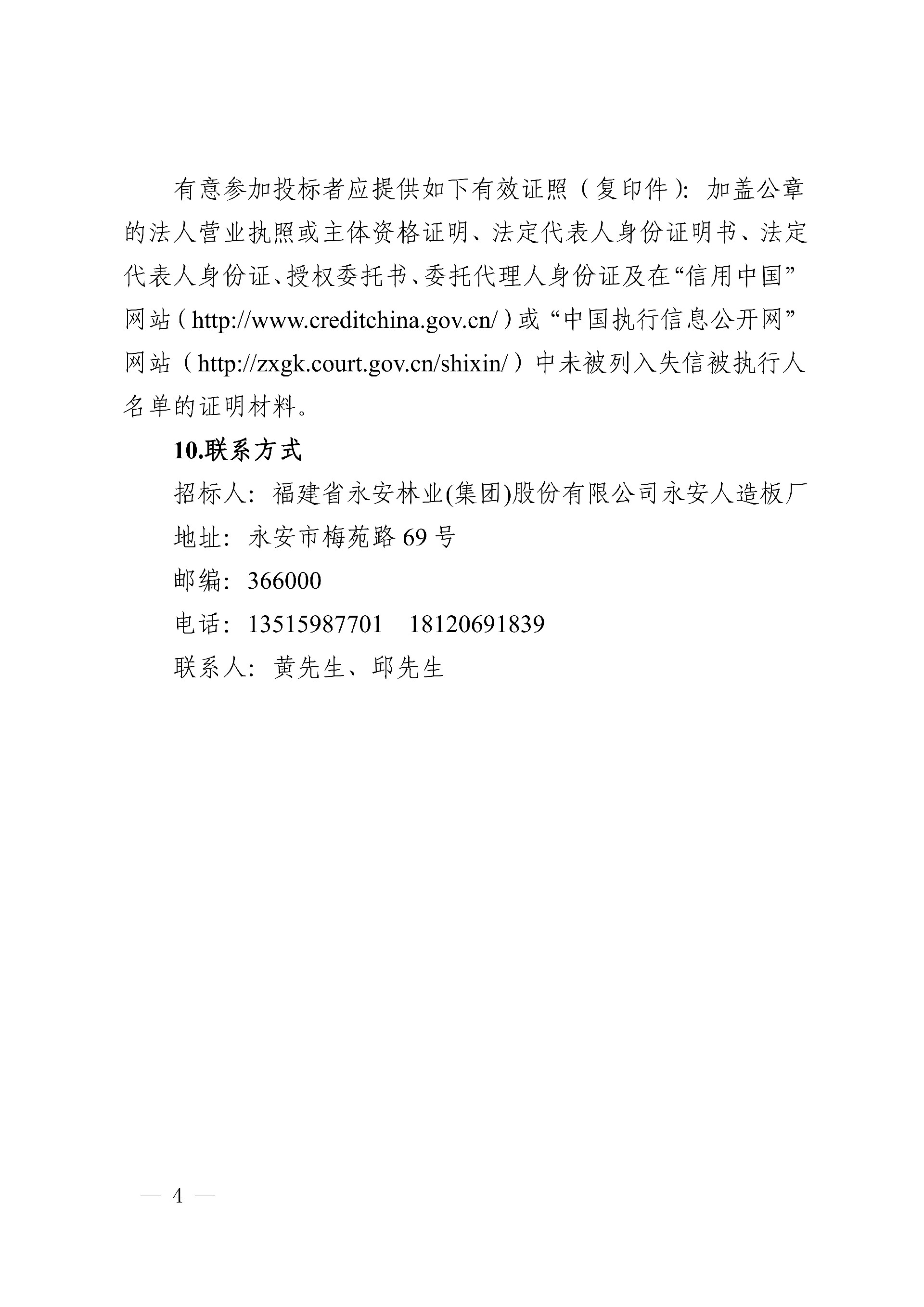 永安人造板廠三聚氰胺采購項目中標結果公告