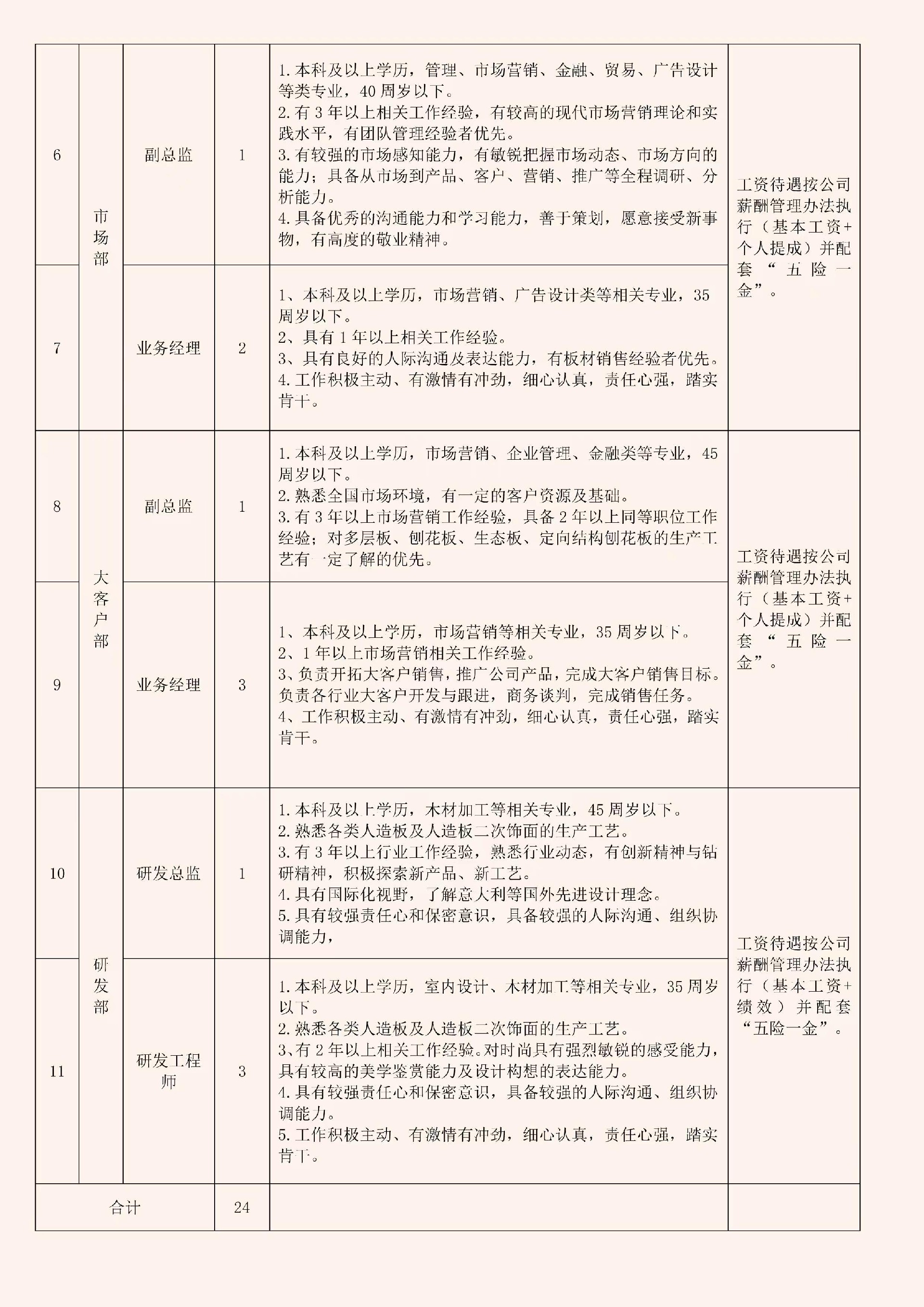 5.研發(fā)部:總監(jiān)1人、研發(fā)工程師3人 具體招聘崗位要求詳見(jiàn)《福建永林家居有限公司相關(guān)崗位招聘計(jì)劃》(附件)