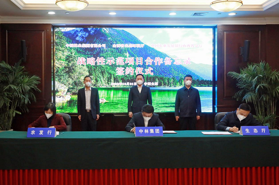 中林集團還與山西省生態環境廳、中國農業發展銀行山西省分行在山西太原簽訂了戰略性示范項目合作備忘錄。未來,三方將共同攜手積極探索山西生態建設、產業發展、林業金融創新等新方法,推進國家儲備林建設、國家生態文明建設示范區創建和“兩山”基地建設等重點工作,為山西省黃河流域生態保護和高質量發展與鄉村振興戰略提供強力支撐。