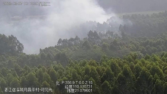 遂溪林場分公司通過監(jiān)控預警子系統(tǒng)發(fā)現(xiàn)平衡林隊1009小班發(fā)生火情