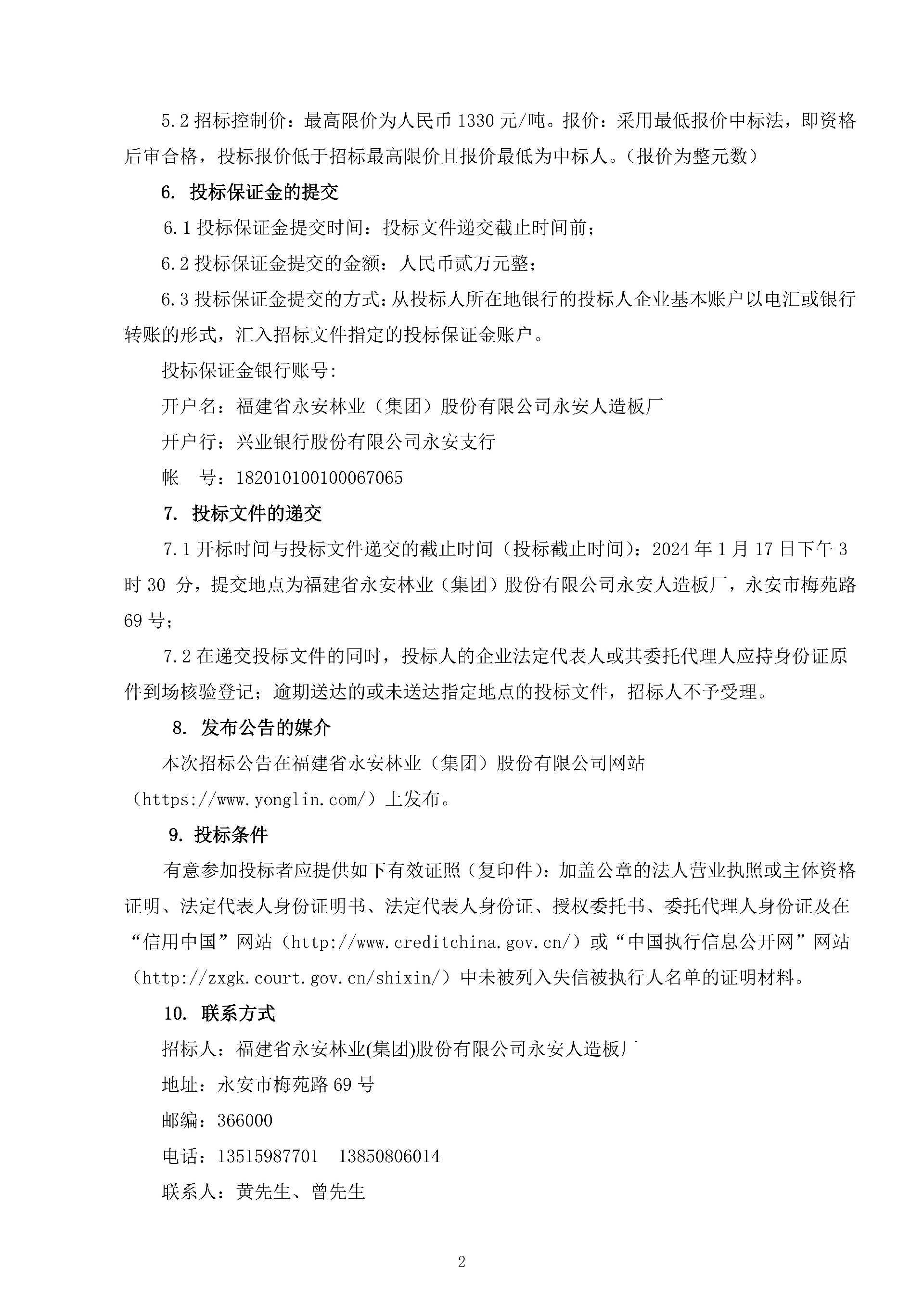 永安人造板廠尿素采購項目招標公告