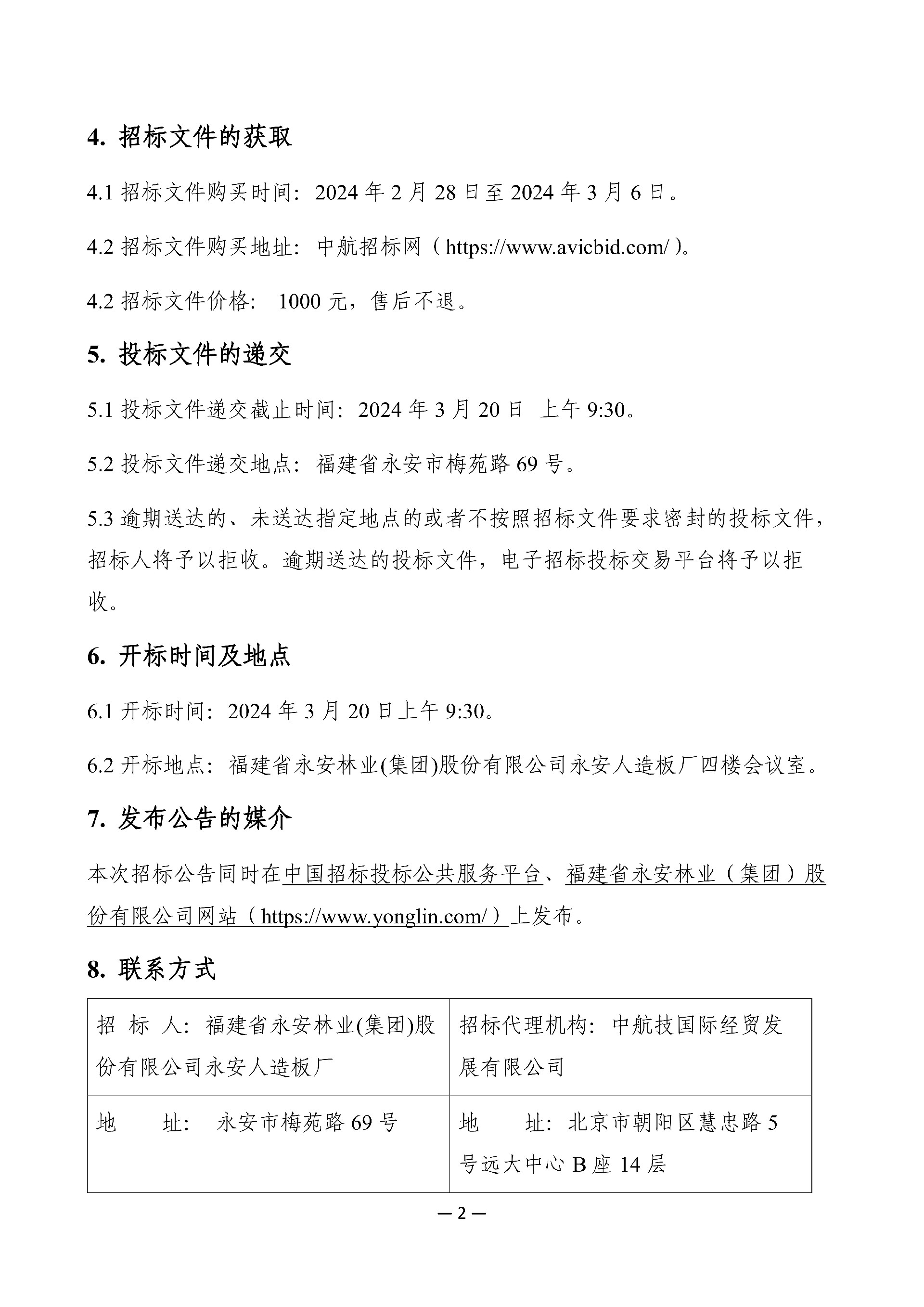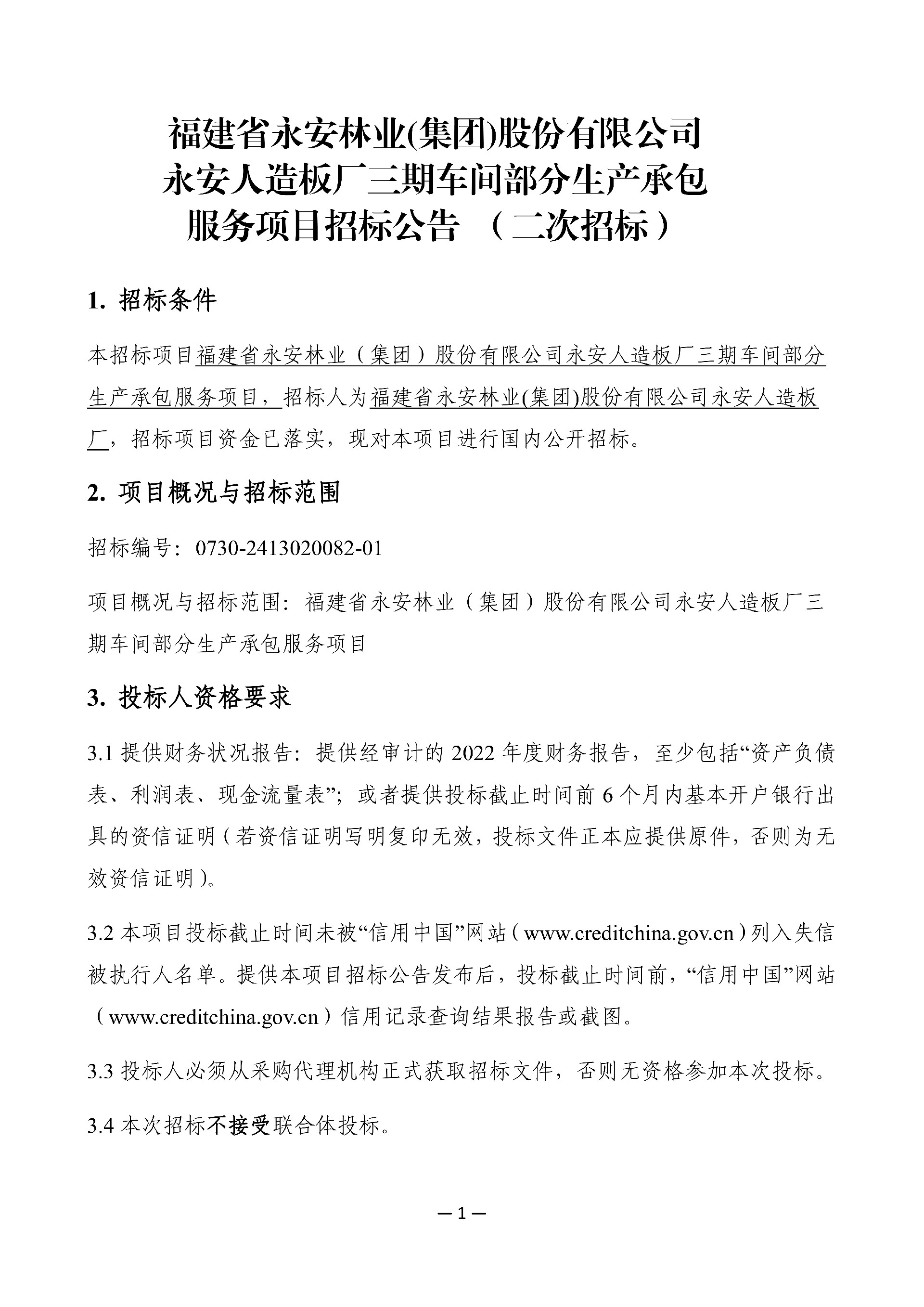 永安人造板廠三期車間部分生產承包服務項目招標公告(二次招標)